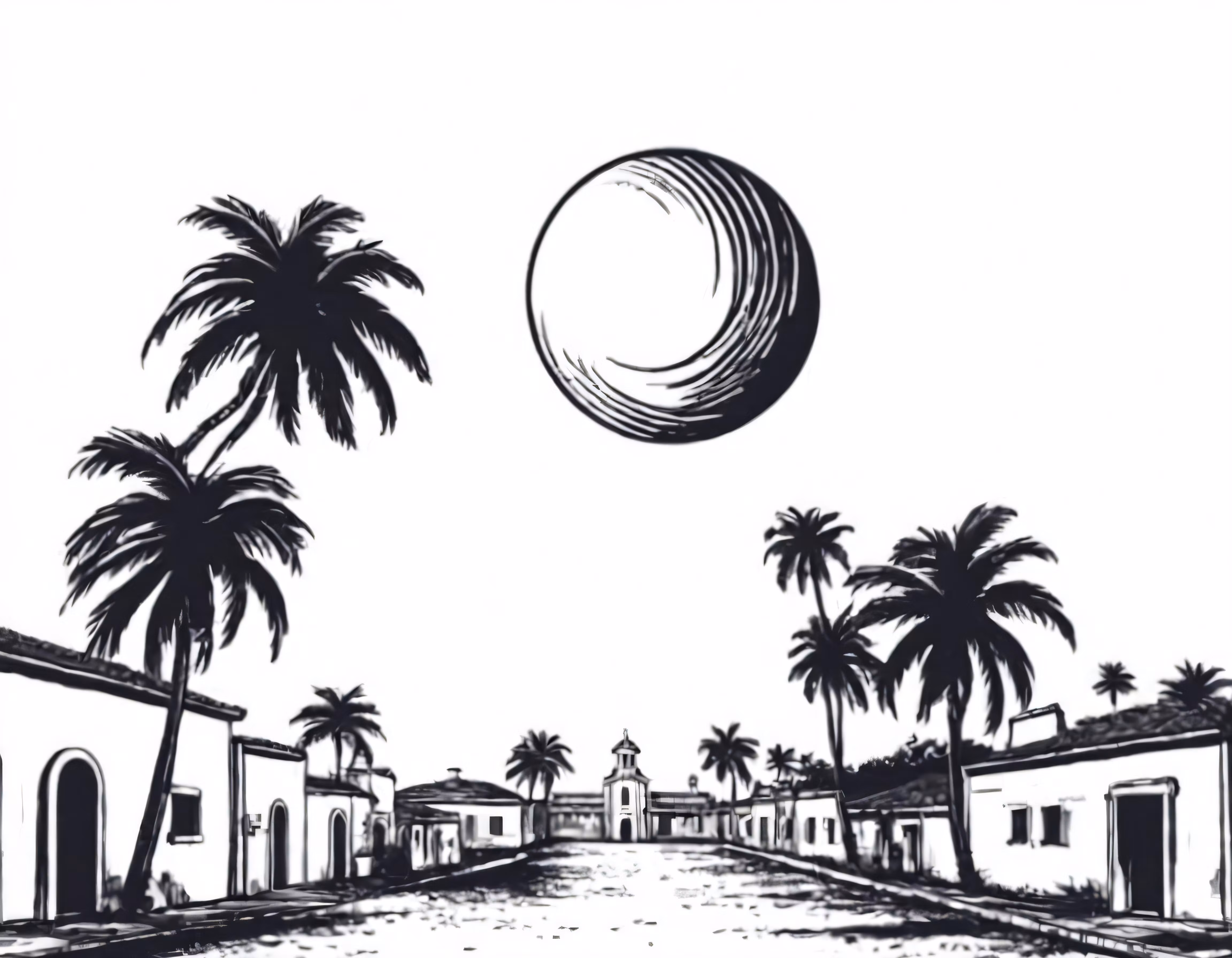 High resolution picture, free to use, a palm tree and street in front of an old house