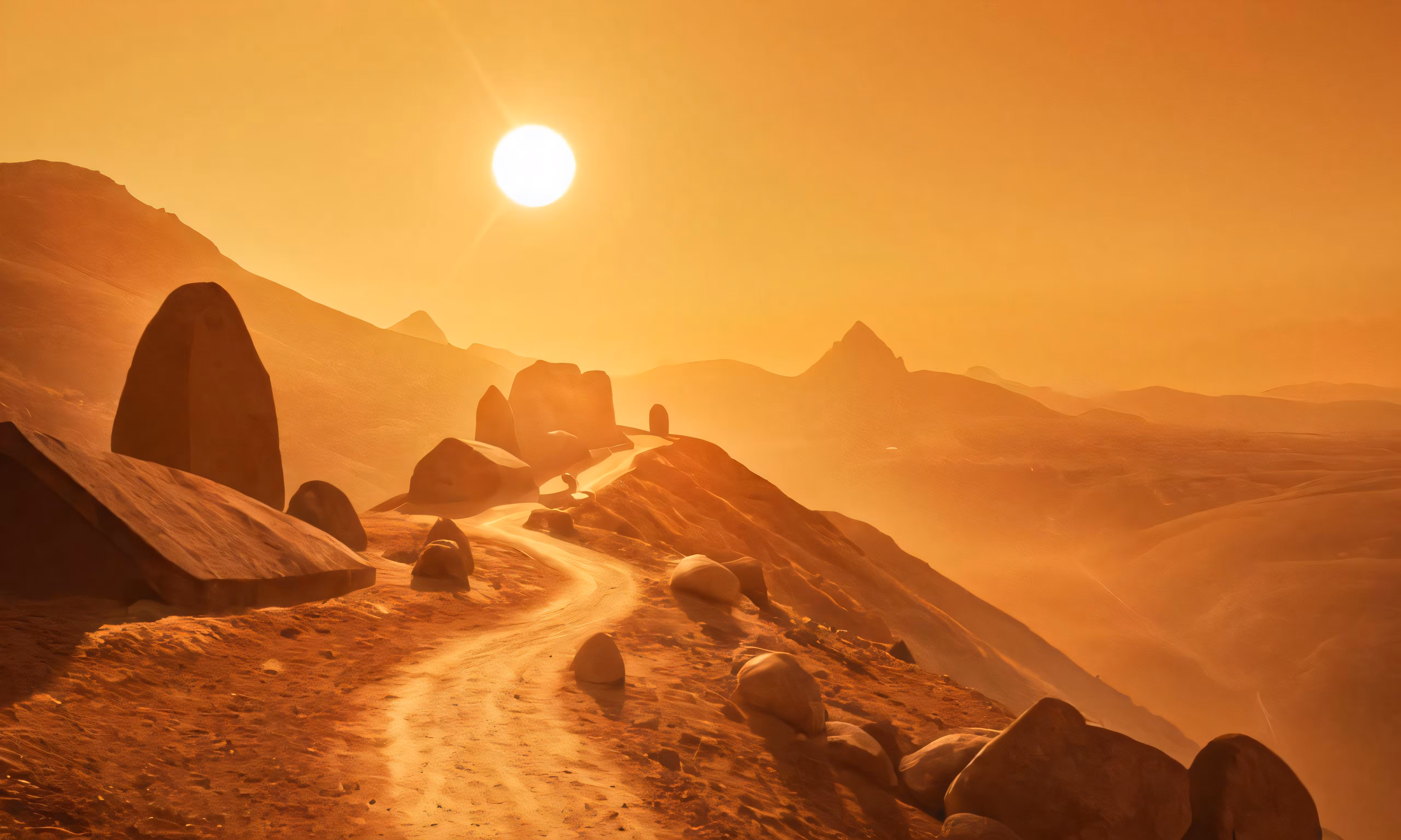 High resolution picture, free to use, a path that runs through some rocks in the desert