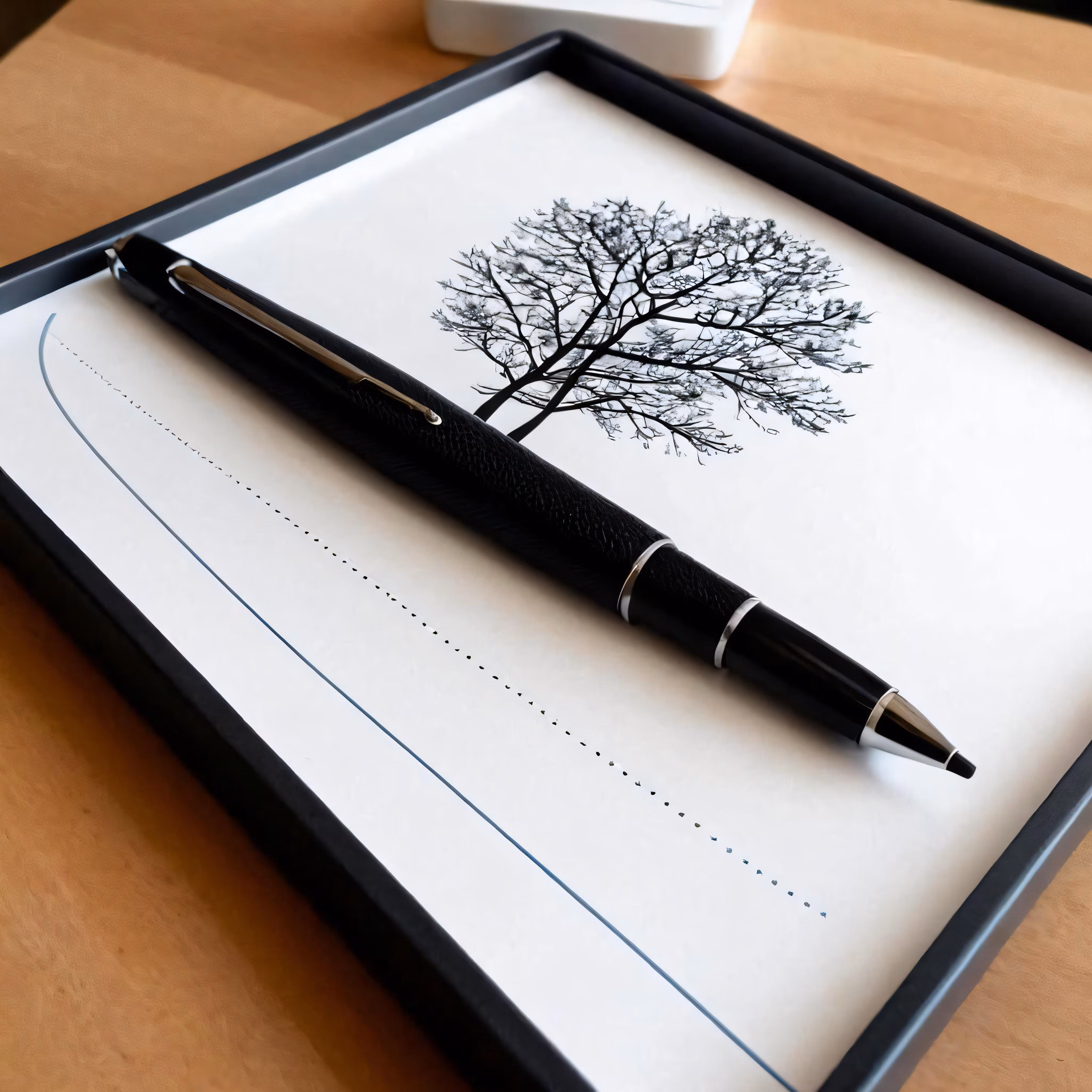 High resolution picture, free to use, a pen is on top of a drawing of a tree