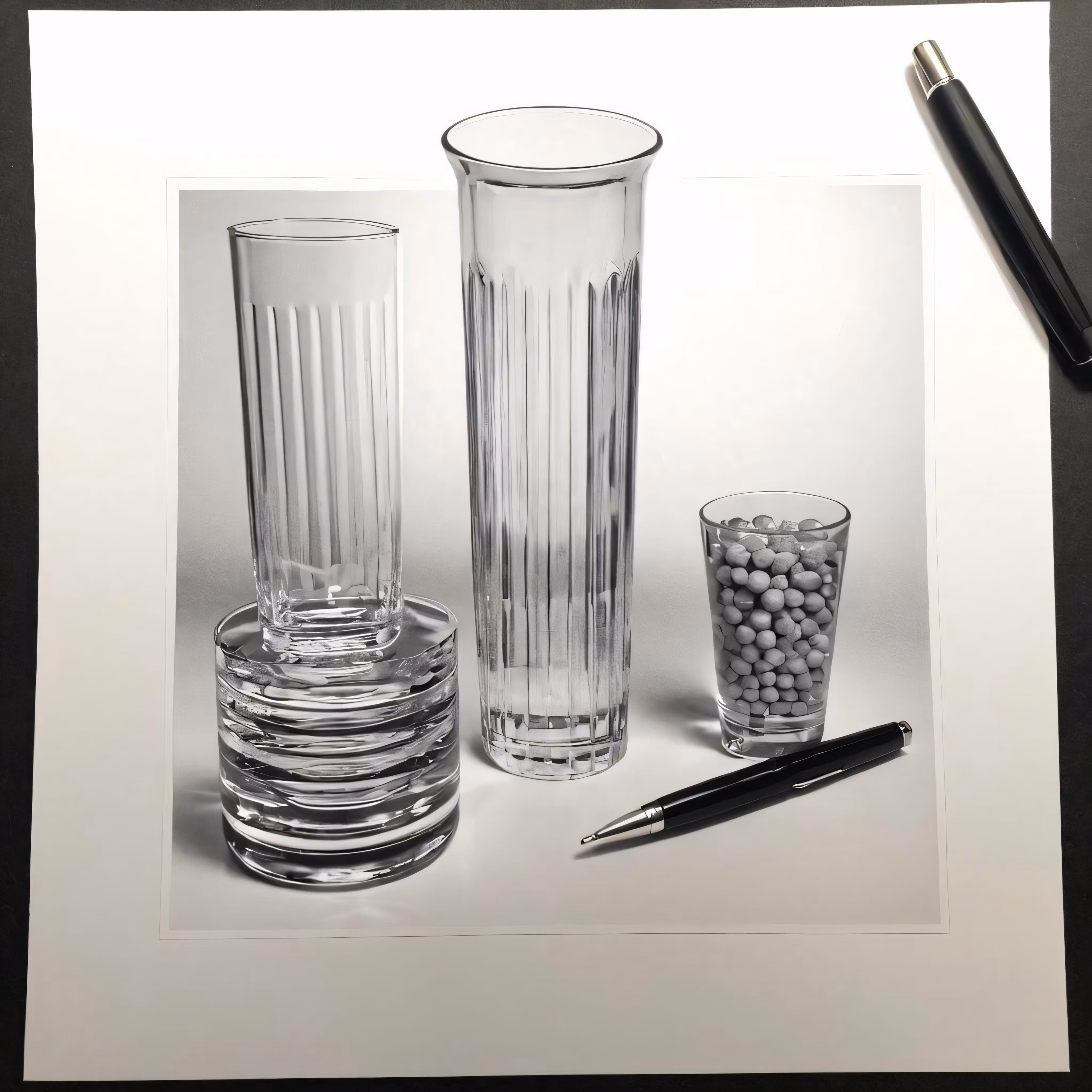 High resolution picture, free to use, a pencil and some glass vases sitting next to each other