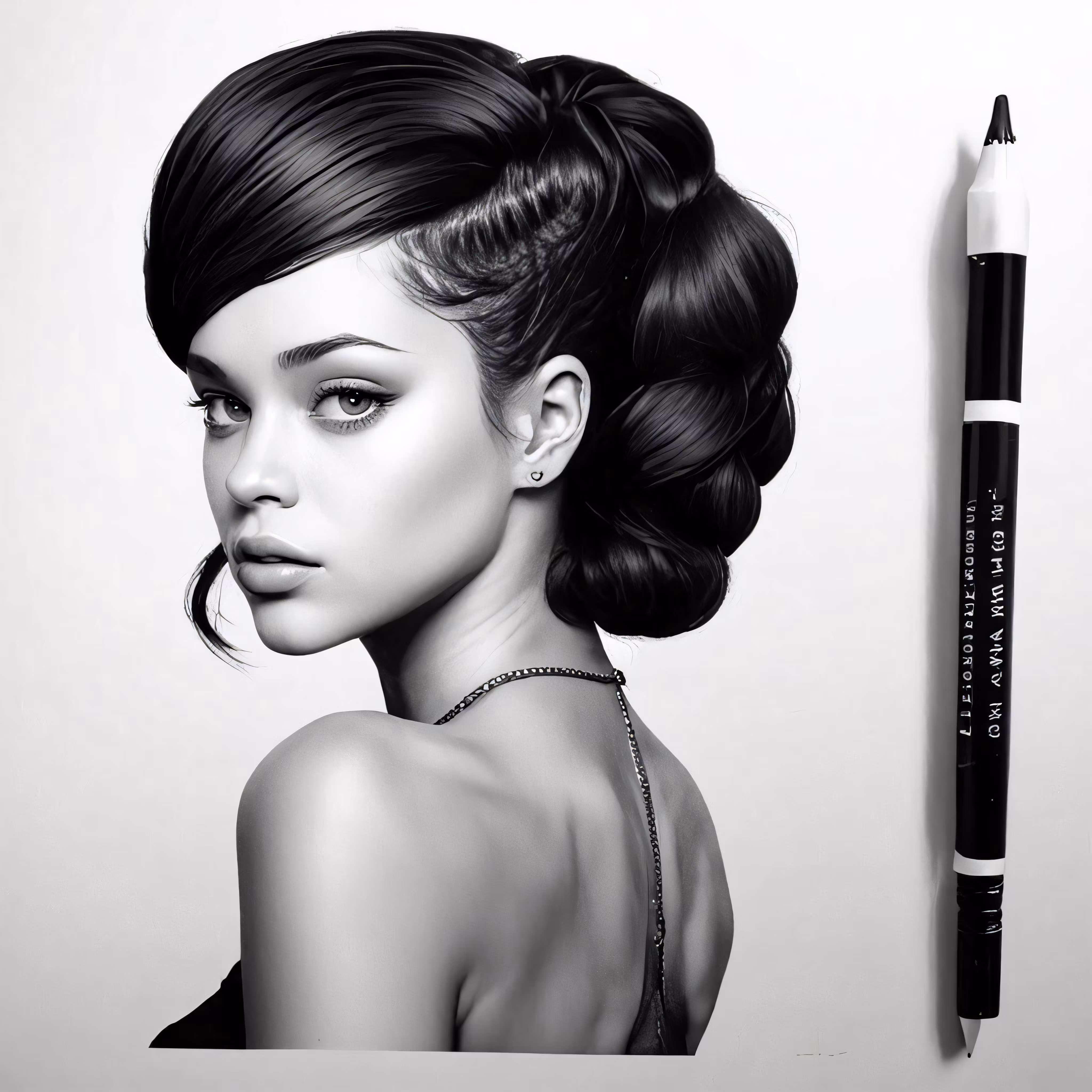 High resolution picture, free to use, a pencil drawing of a beautiful woman with her hair in a bun
