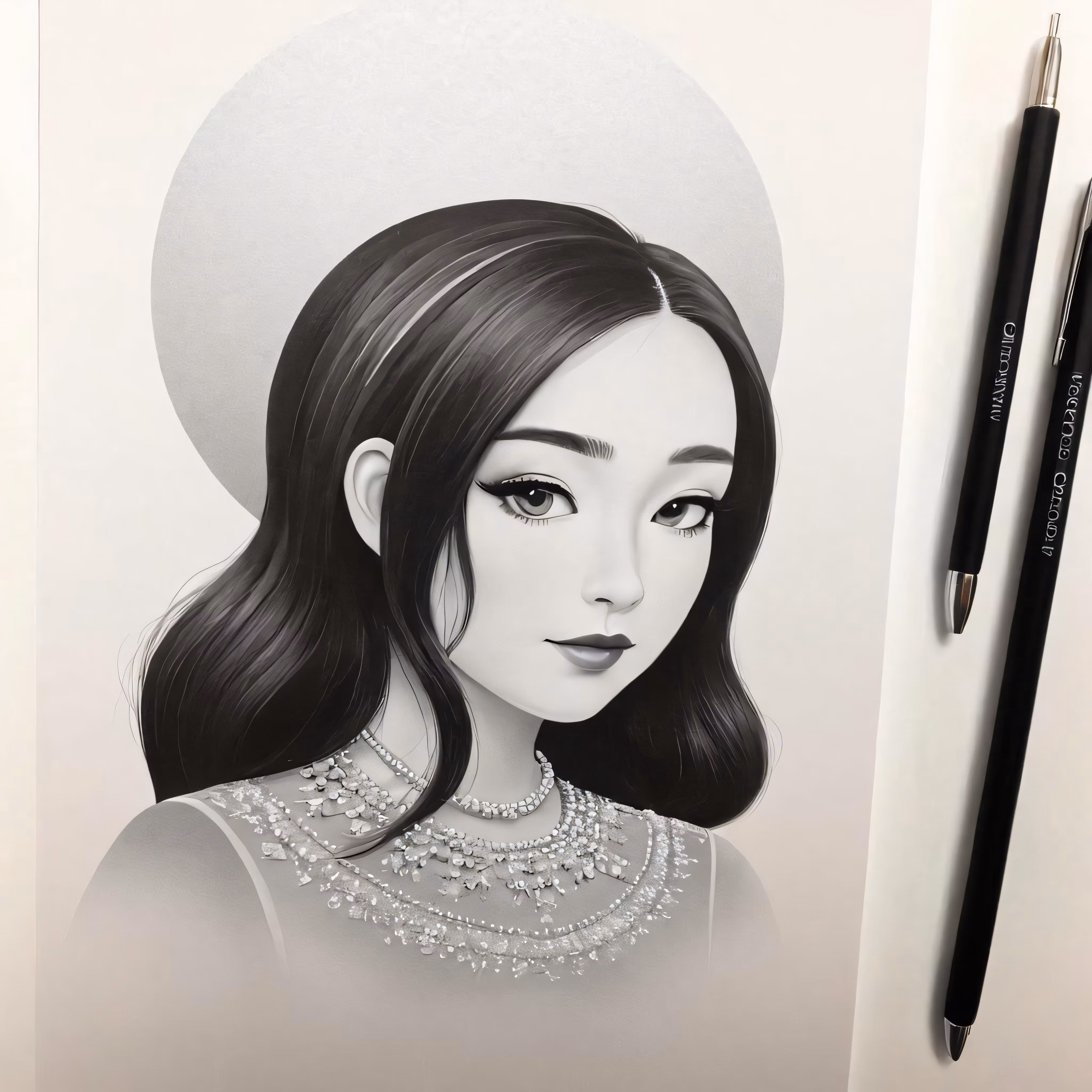 High resolution picture, free to use, a pencil sketch of an asian girl