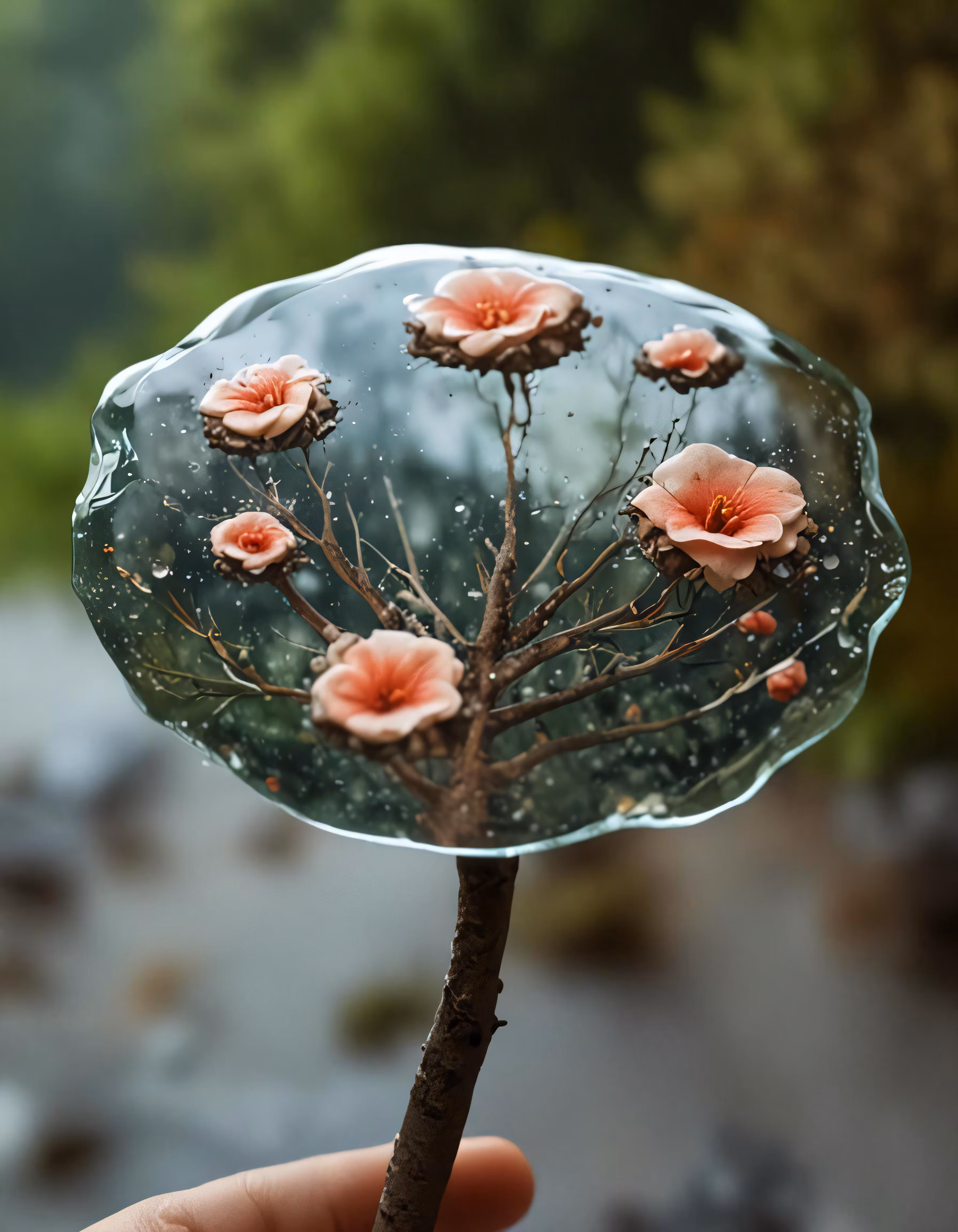 High resolution picture, free to use, a person holding a flower decoration on a stick