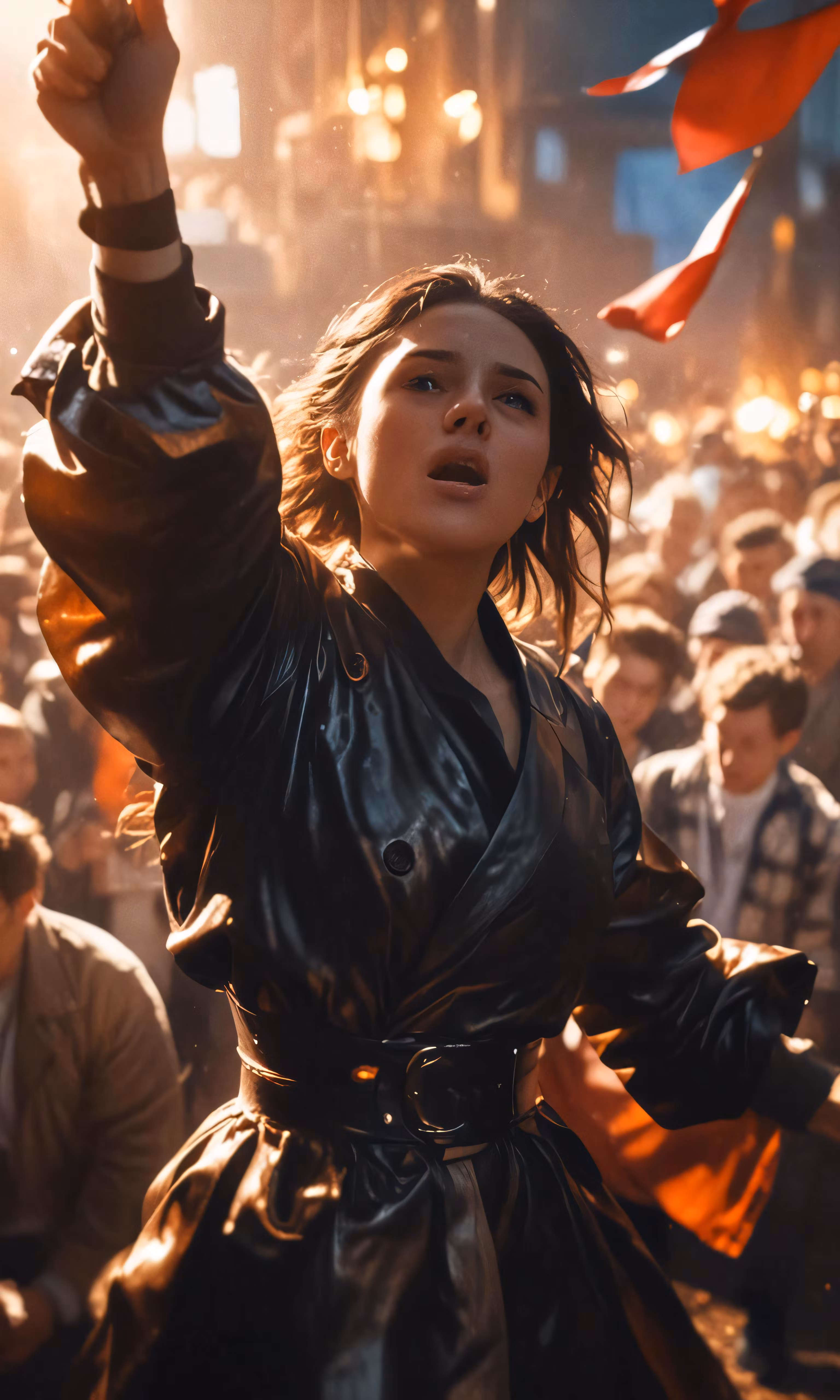 High resolution picture, free to use, a person in a coat holds a lit up kite
