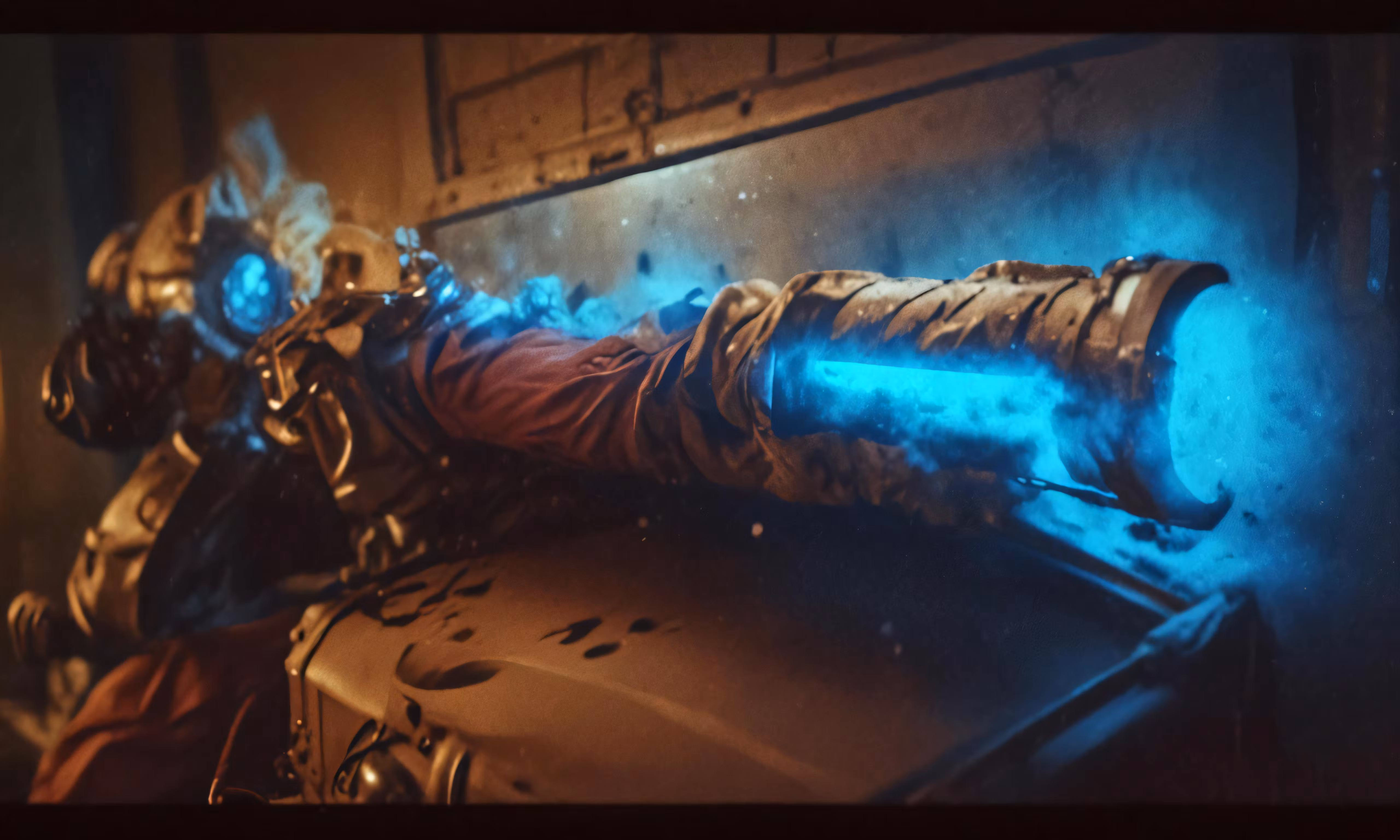 High resolution picture, free to use, a person in a futuristic suit with blue lights