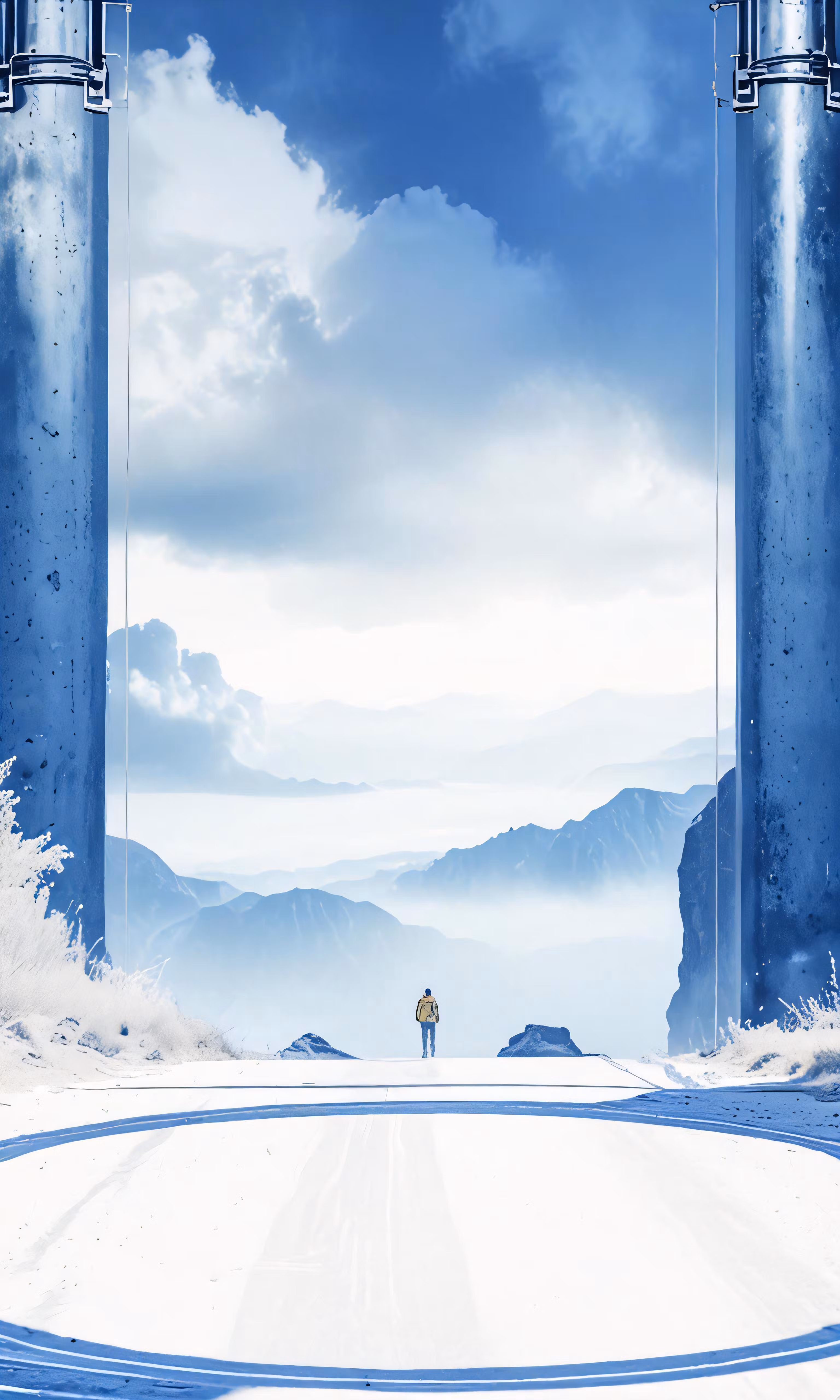 High resolution picture, free to use, a person is walking down the middle of an empty road