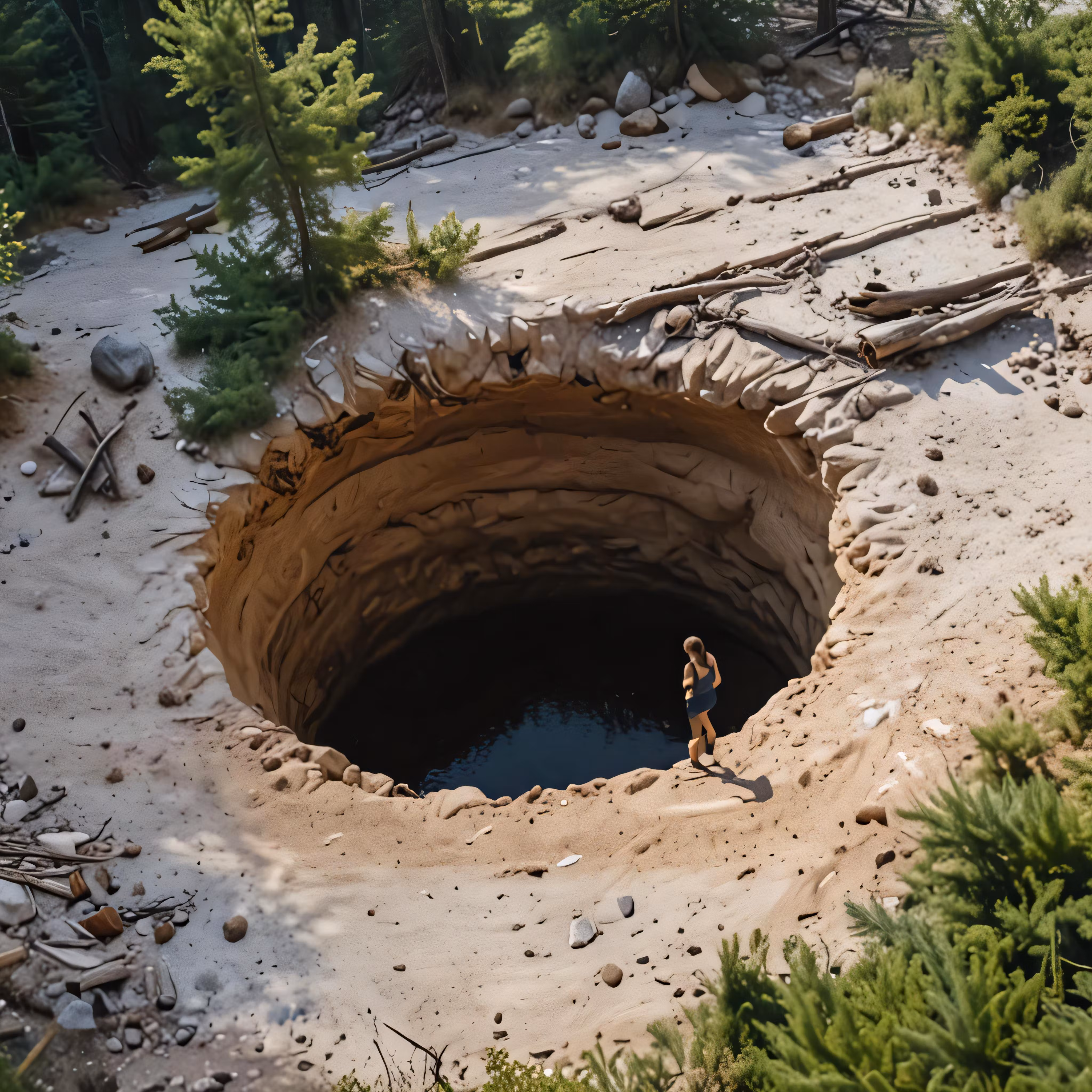 High resolution picture, free to use, a person is walking towards an empty, partially constructed cave