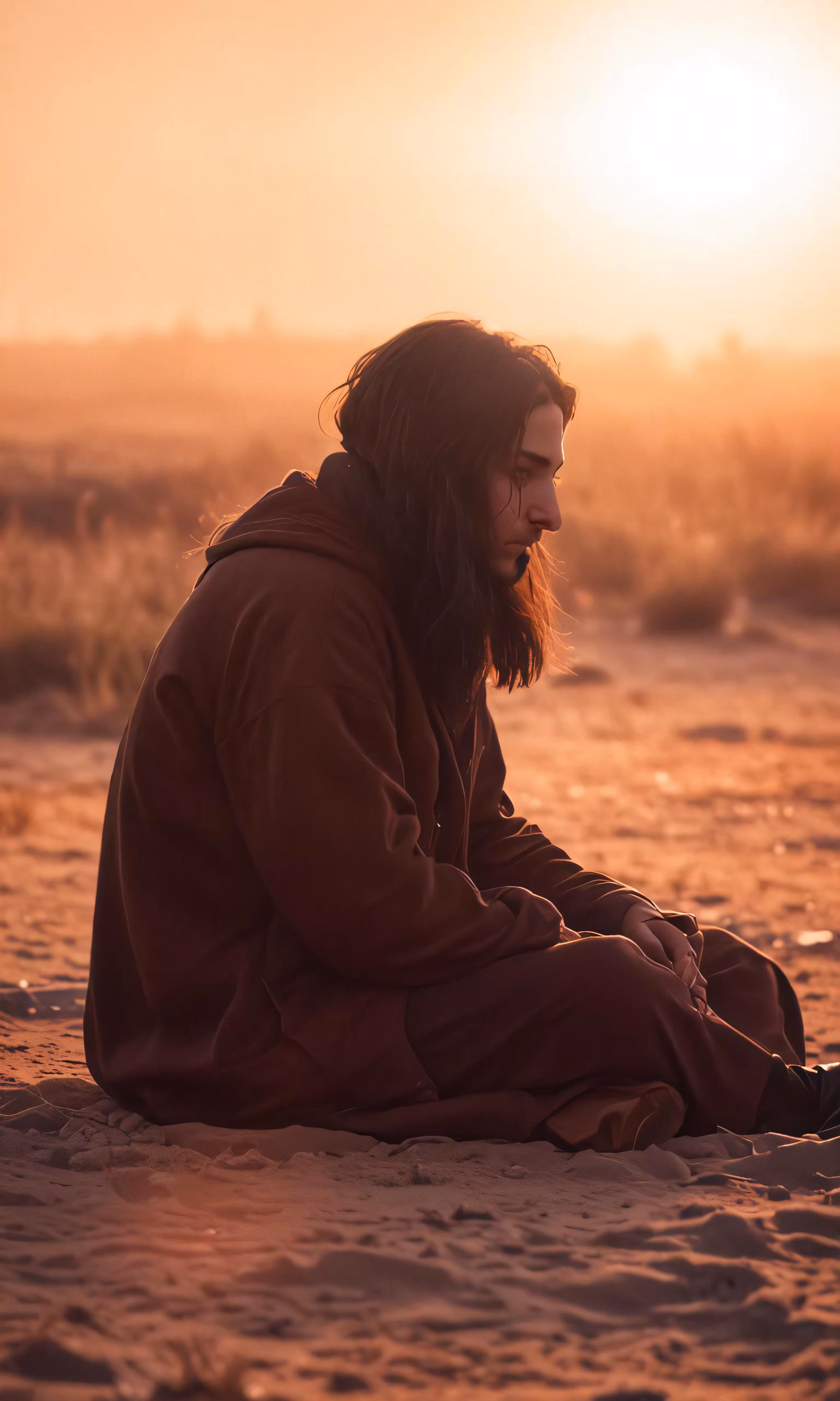 High resolution picture, free to use, a person sits in the sand looking at a laptop