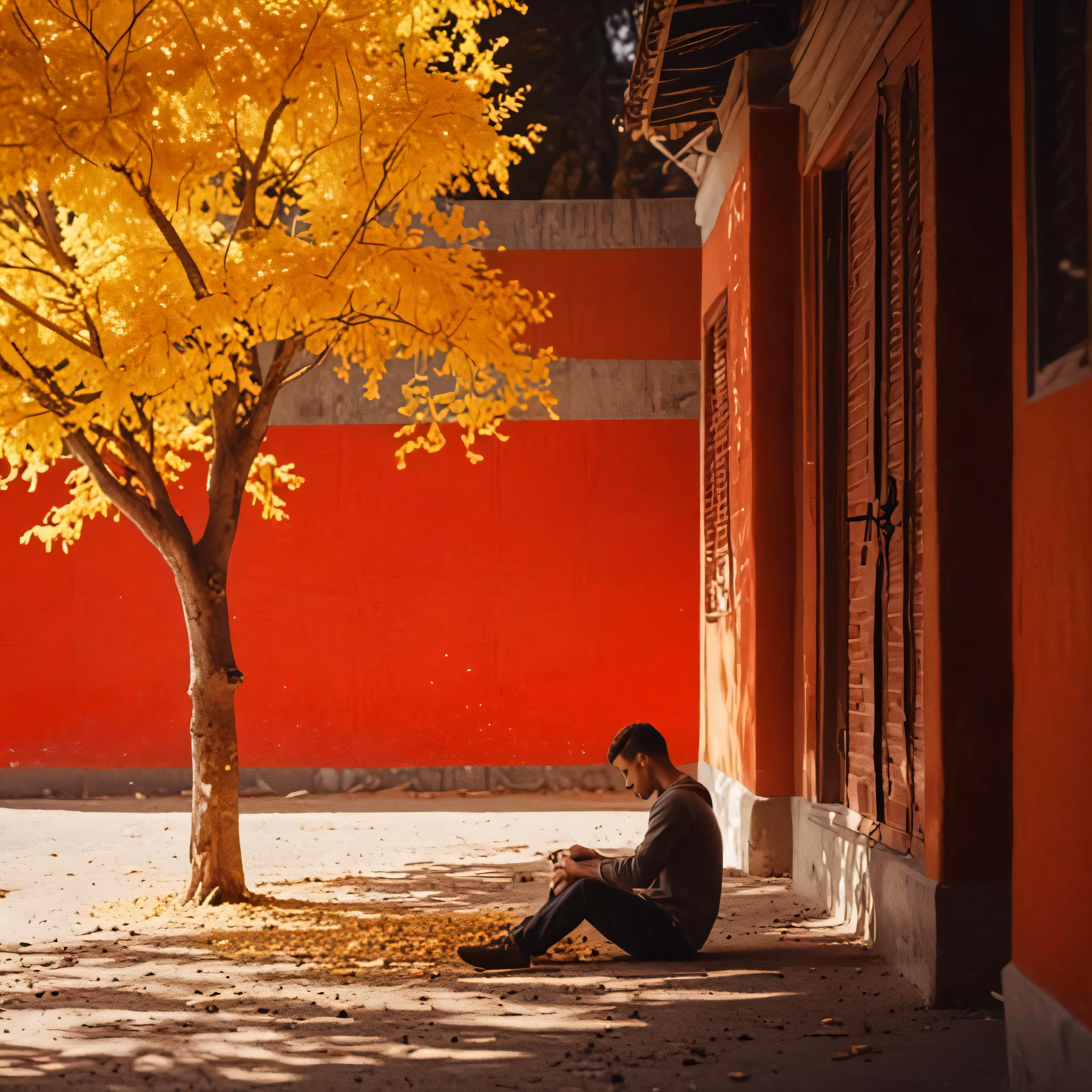 High resolution picture, free to use, a person sitting in front of a tree on the ground