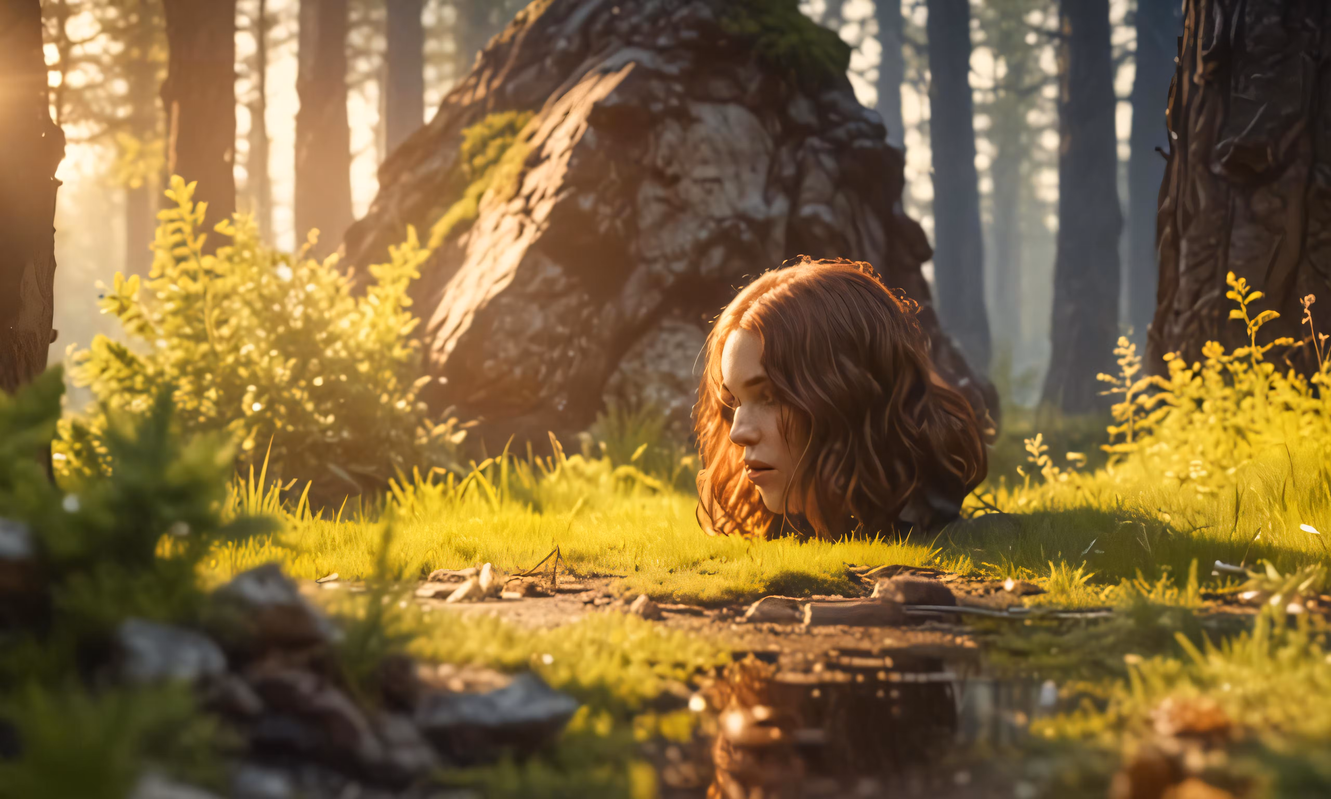 High resolution picture, free to use, a person sitting on grass in front of trees