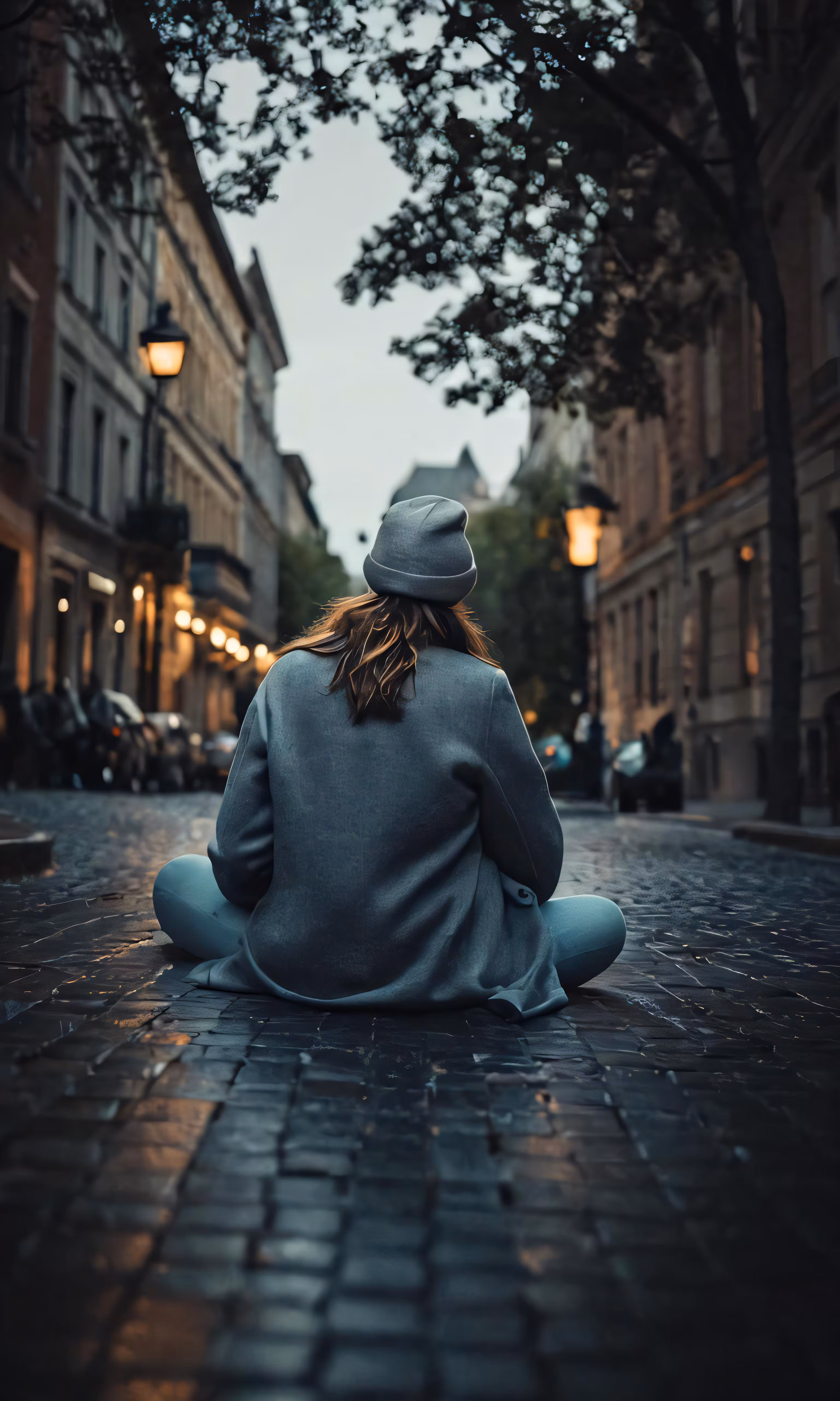 High resolution picture, free to use, a person sitting on the ground, staring up to the sky