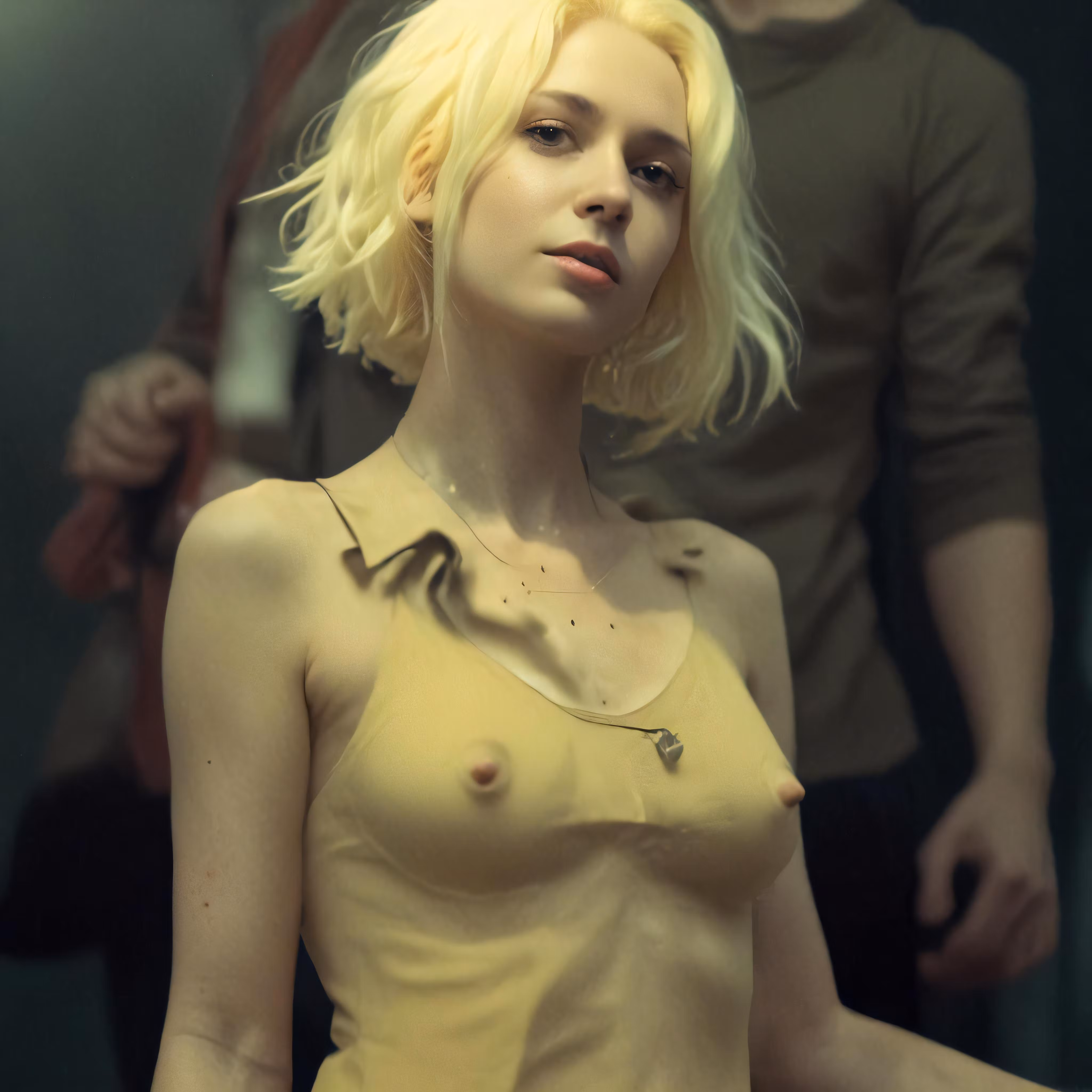 High resolution picture, free to use, a person with yellow hair standing in front of a mirror