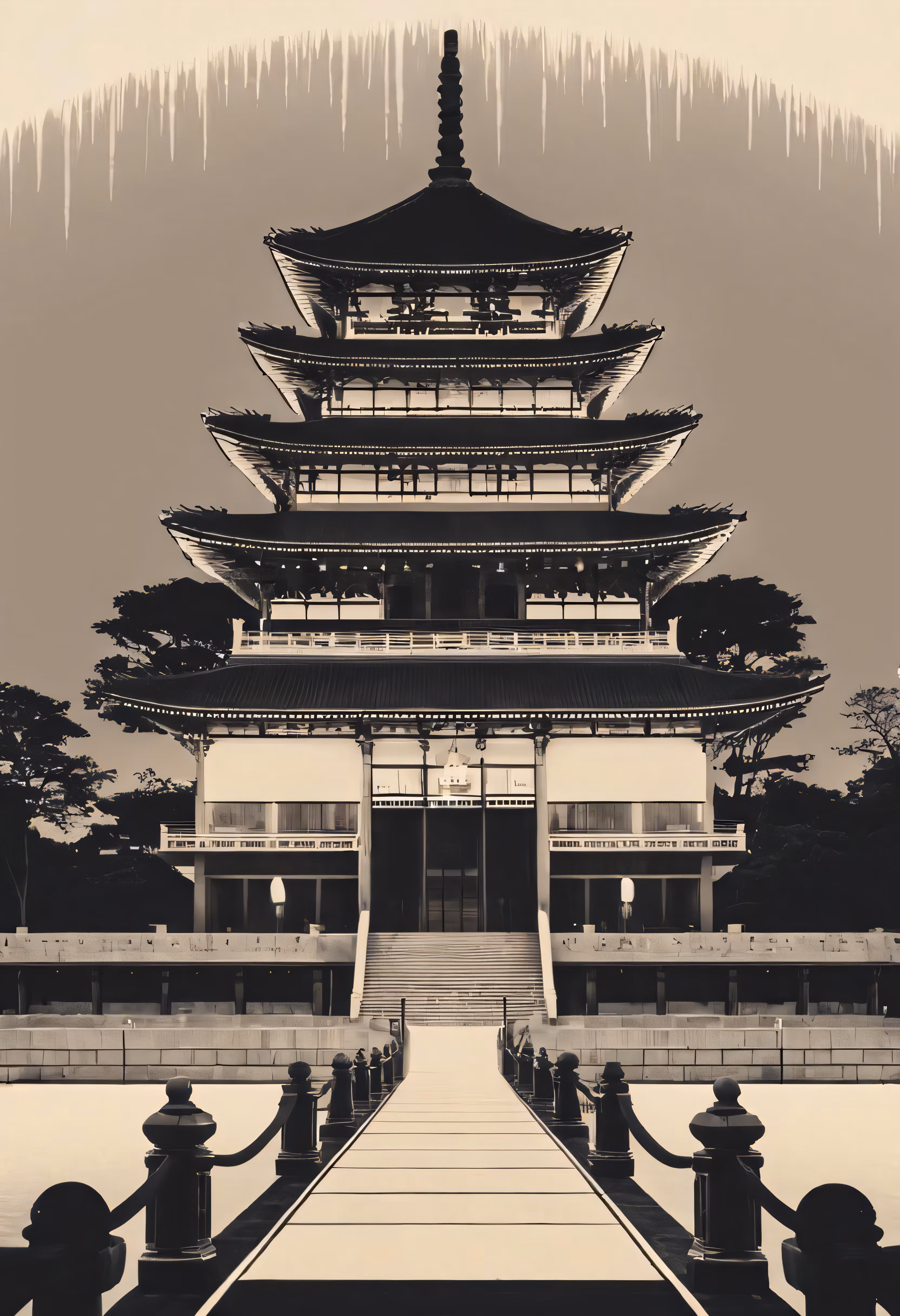 High resolution picture, free to use, a photo of a large chinese building on top of a hill