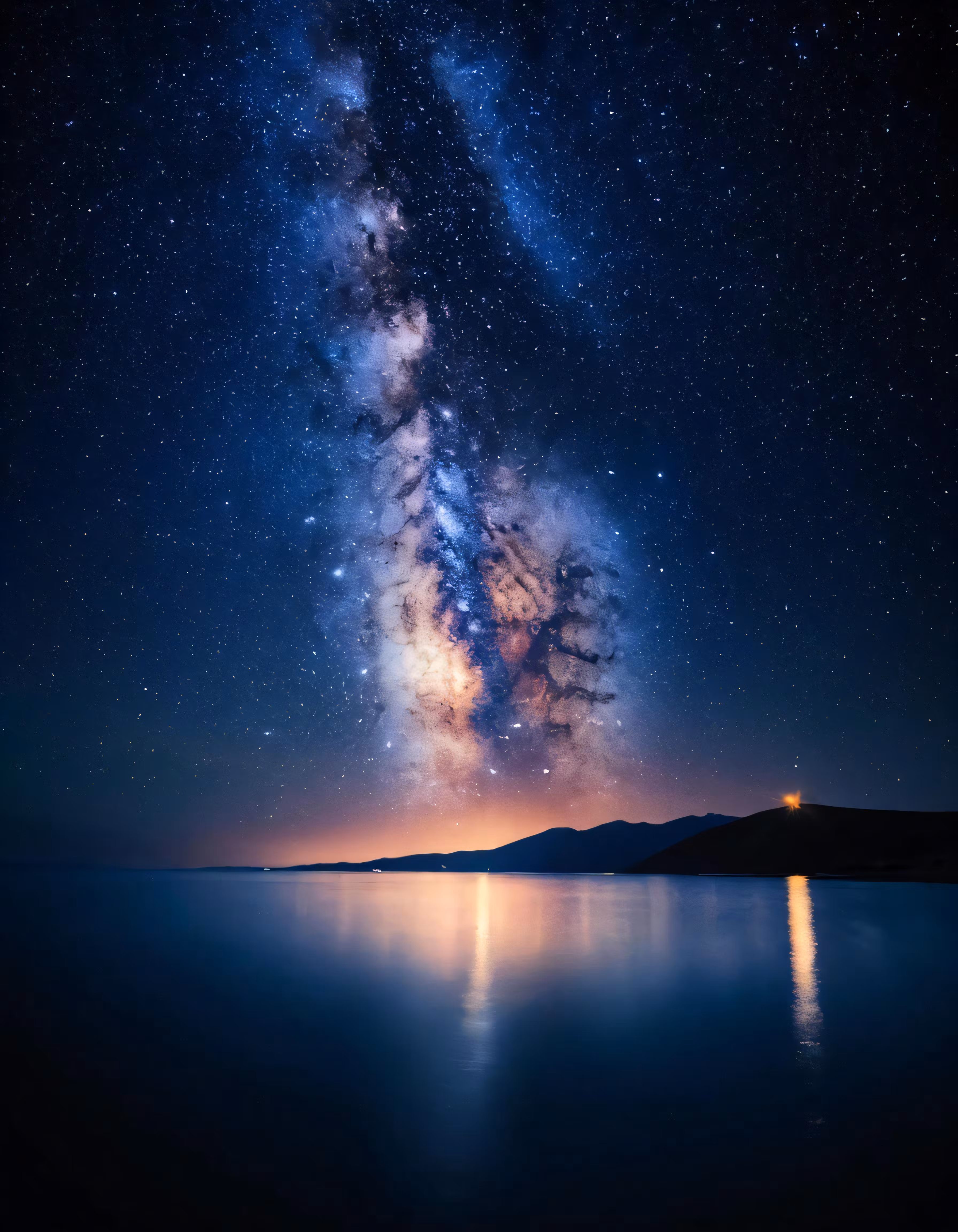 High resolution picture, free to use, a photo of the night sky with a bright and blue milky