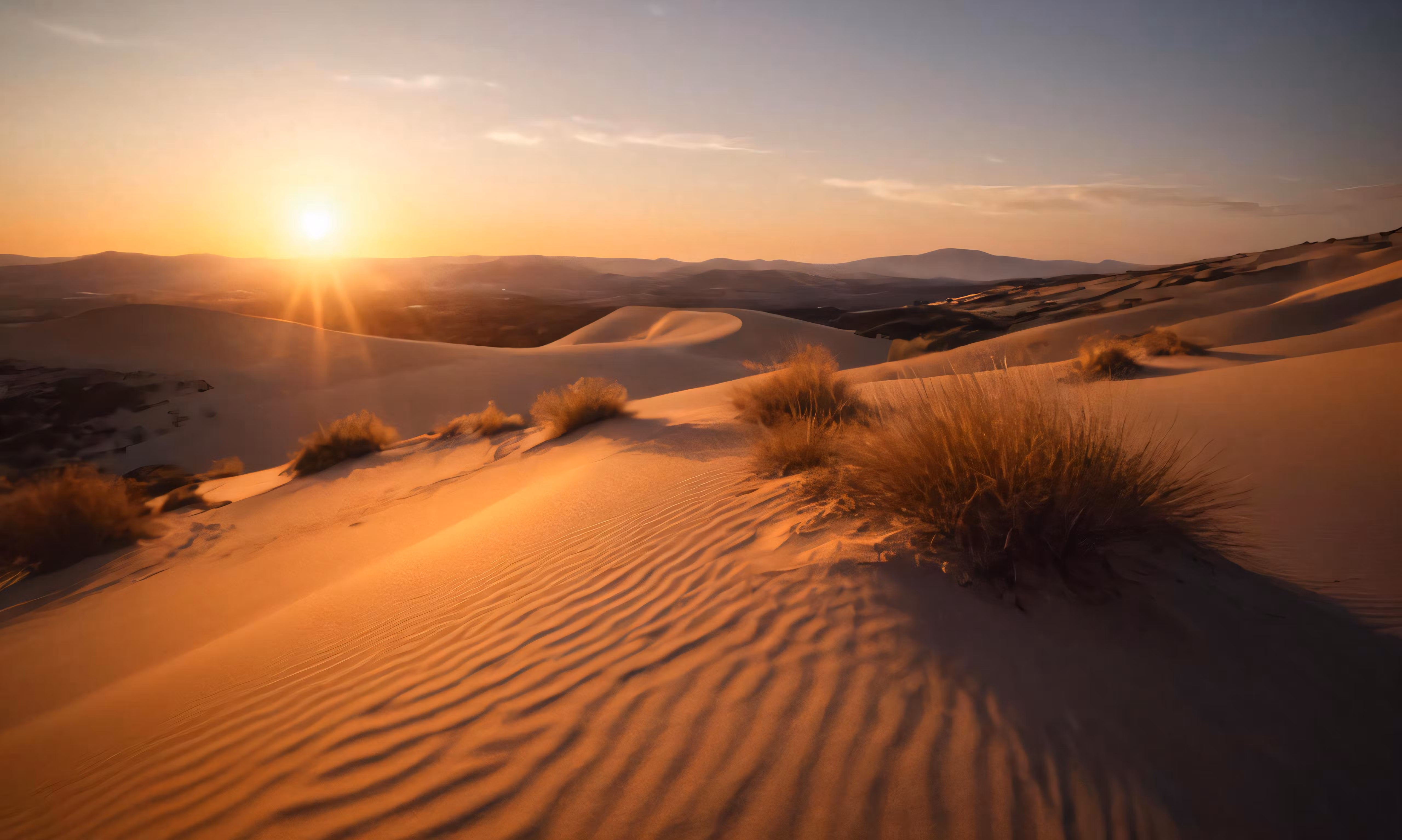 High resolution picture, free to use, a photo of the sun going down over sand dunes in the desert