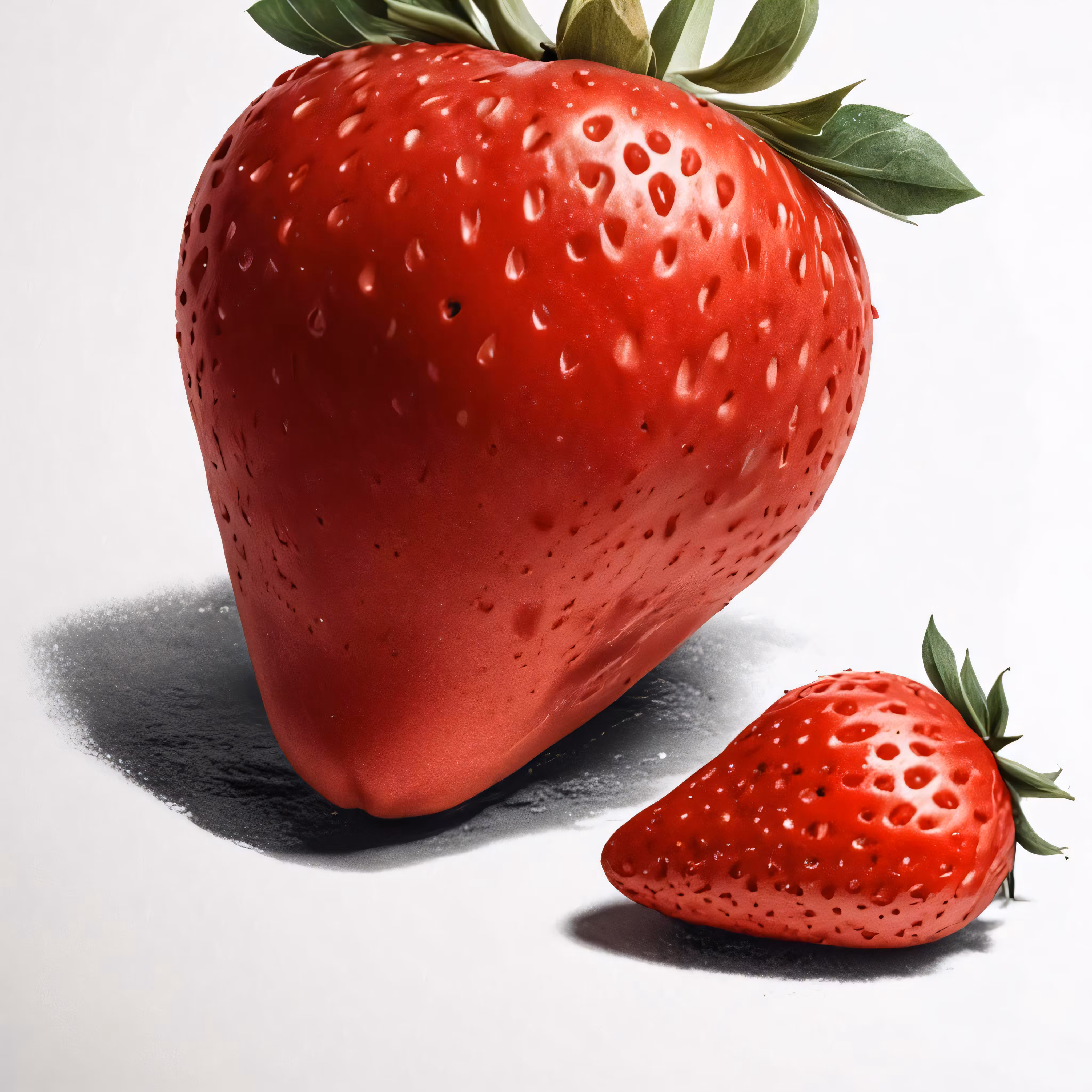 High resolution picture, free to use, a photo of two strawberries with leaves in the middle of it