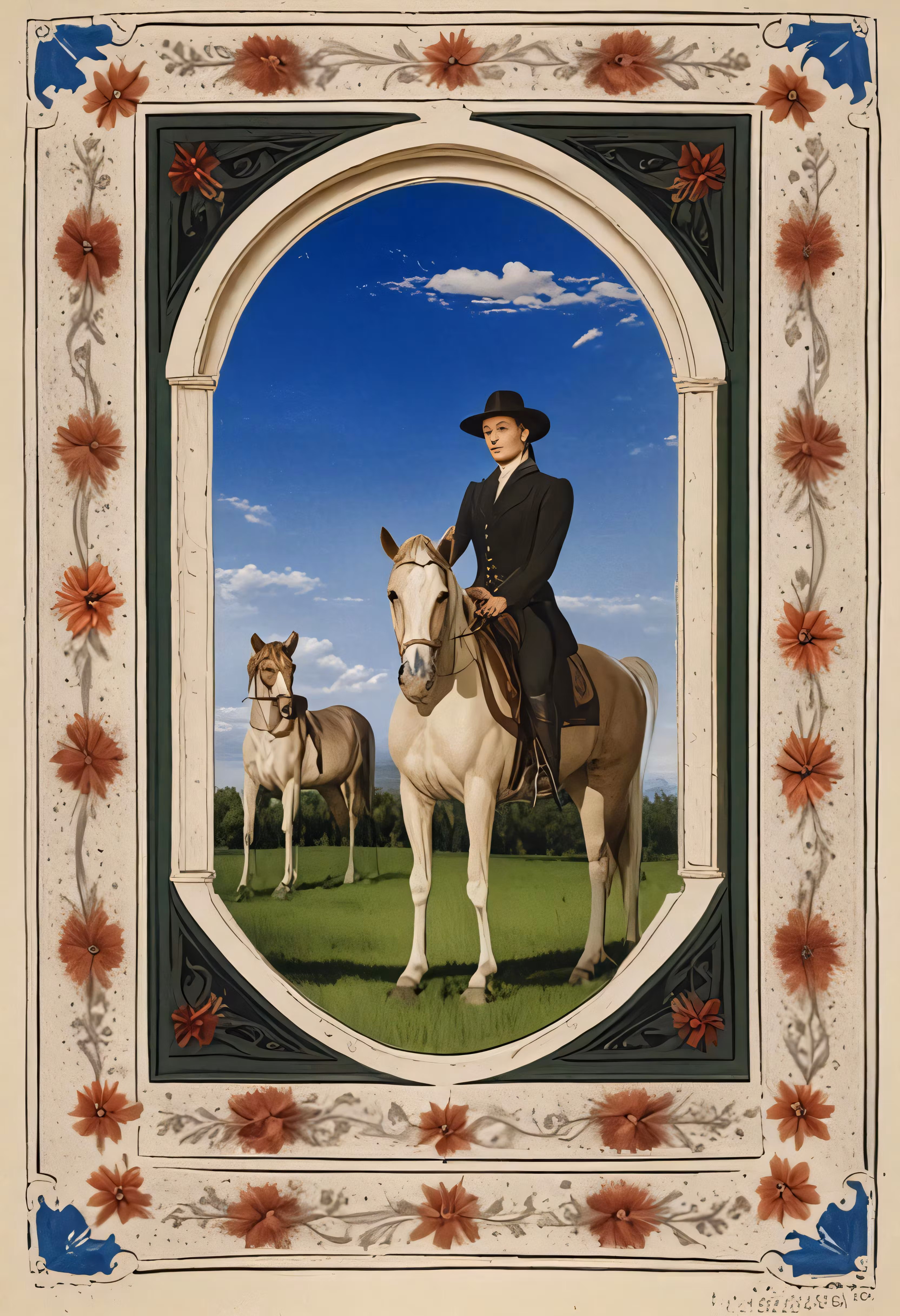 High resolution picture, free to use, a picture of a painting of a person riding a horse