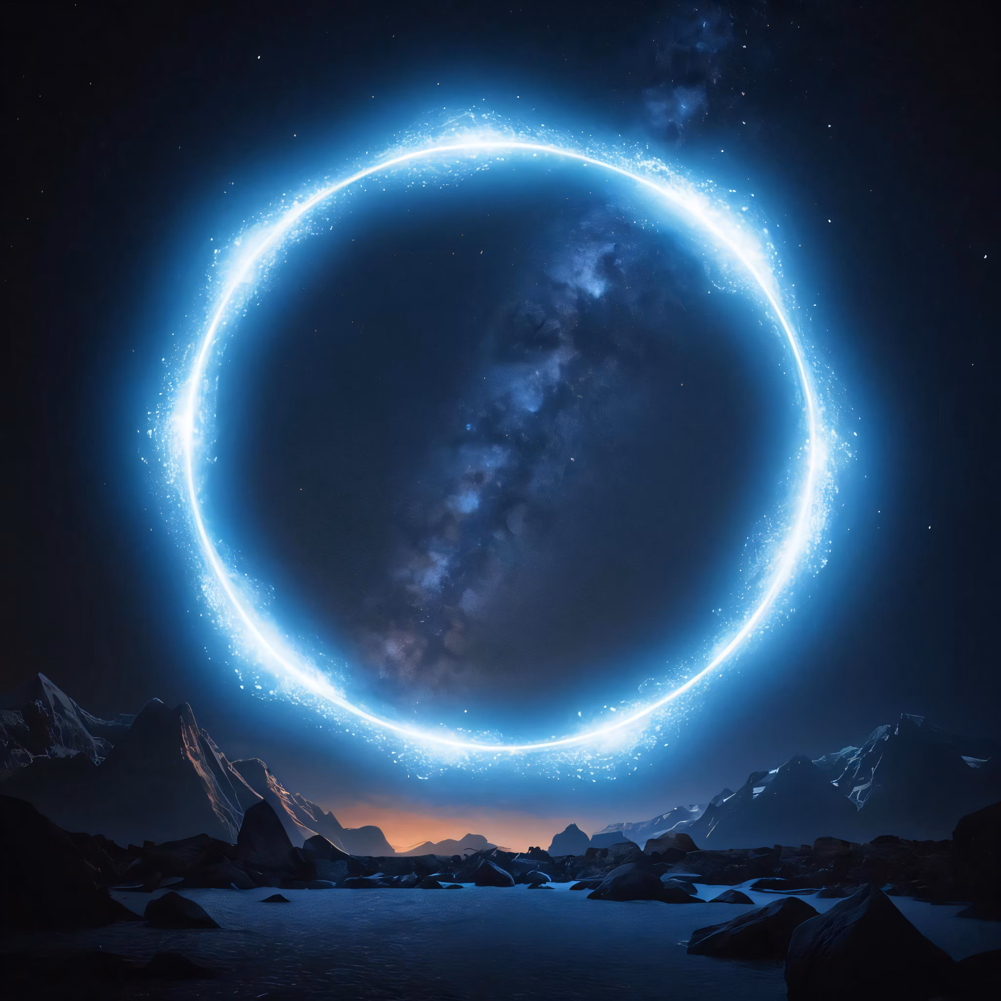 High resolution picture, free to use, a picture of a very big circle of light over a body of water