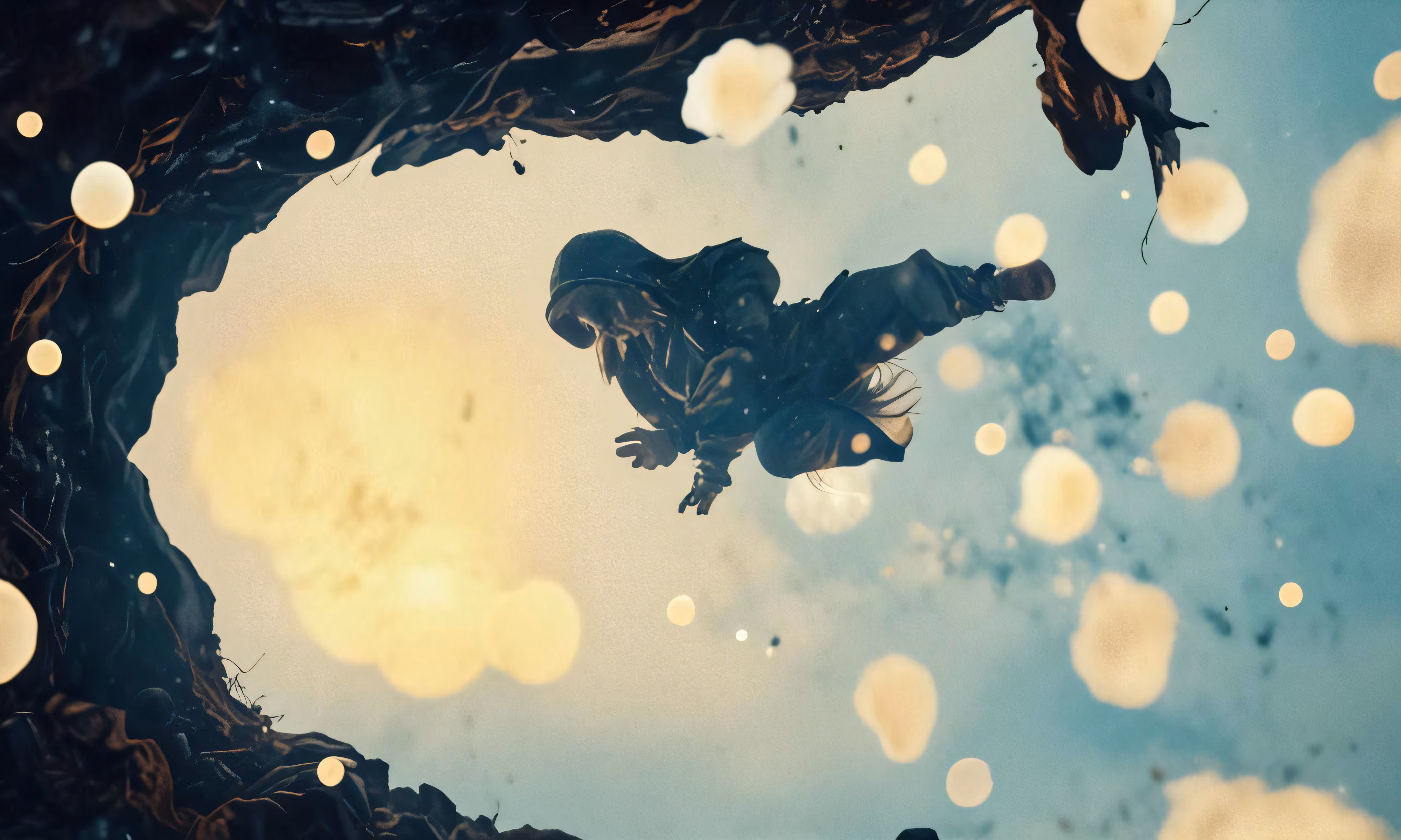 High resolution picture, free to use, a picture of someone flying in front of some balloons