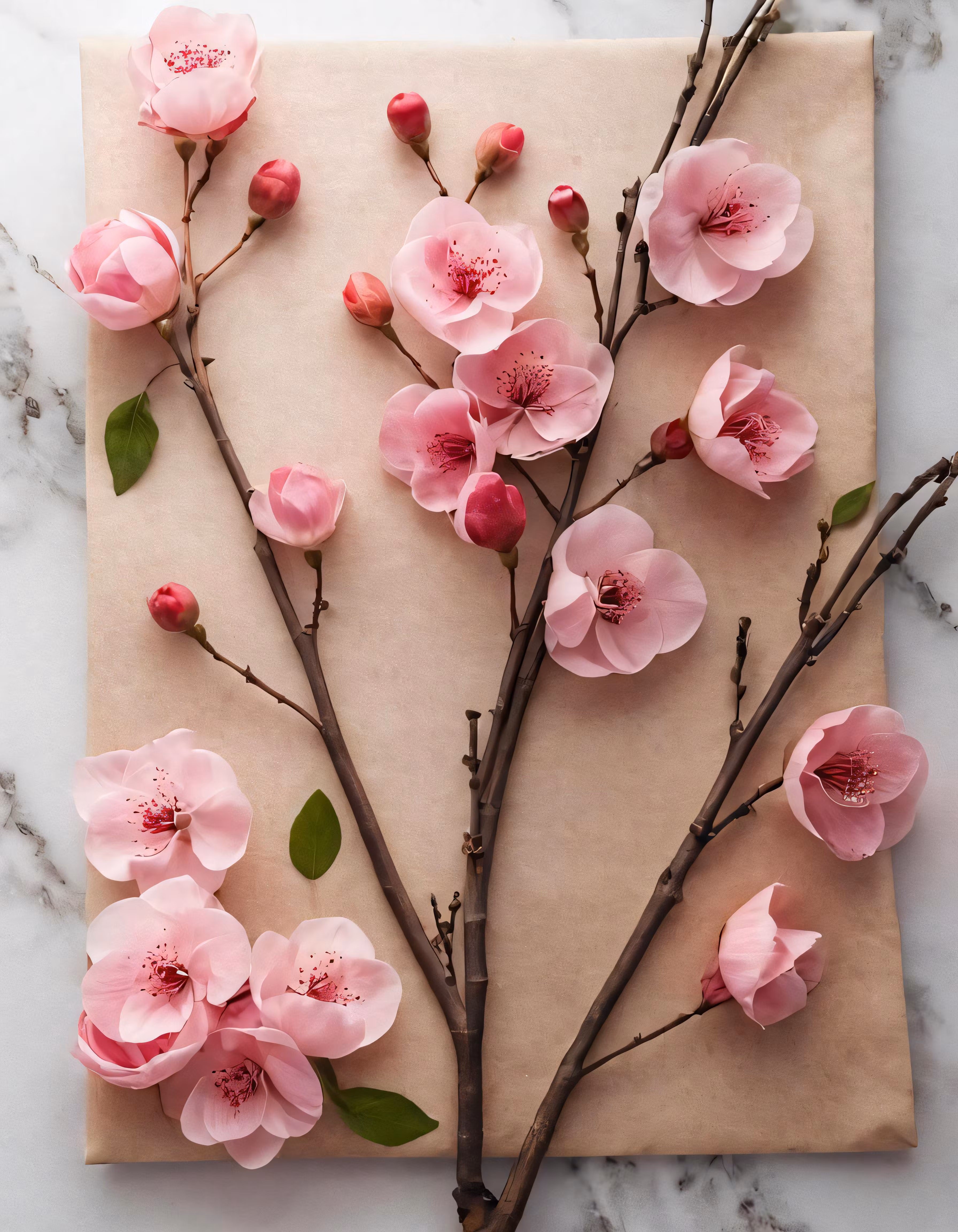 High resolution picture, free to use, a piece of paper with pink flowers sitting on top of it
