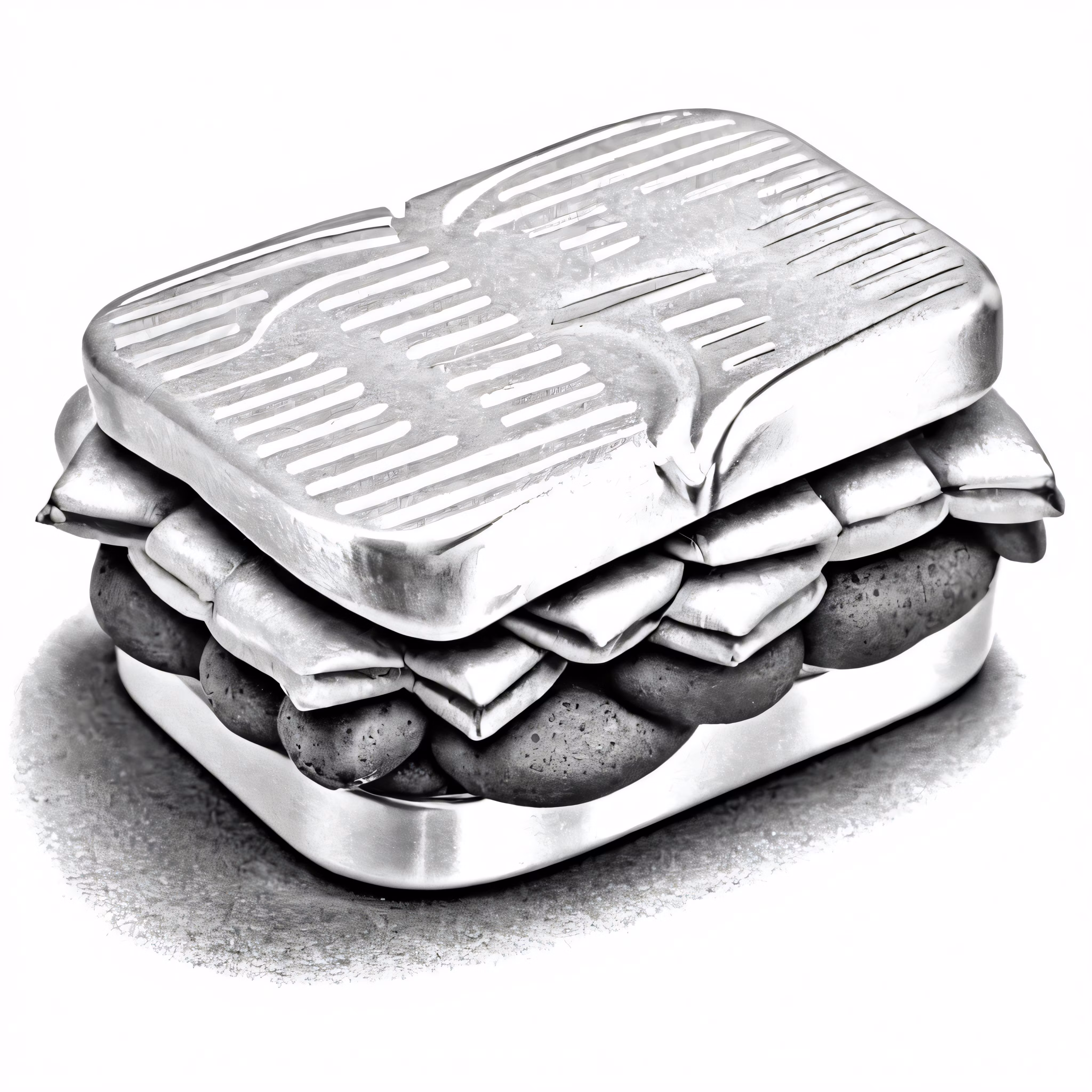 High resolution picture, free to use, a piece of silver foil sitting on top of a bun with some sandwiches in it