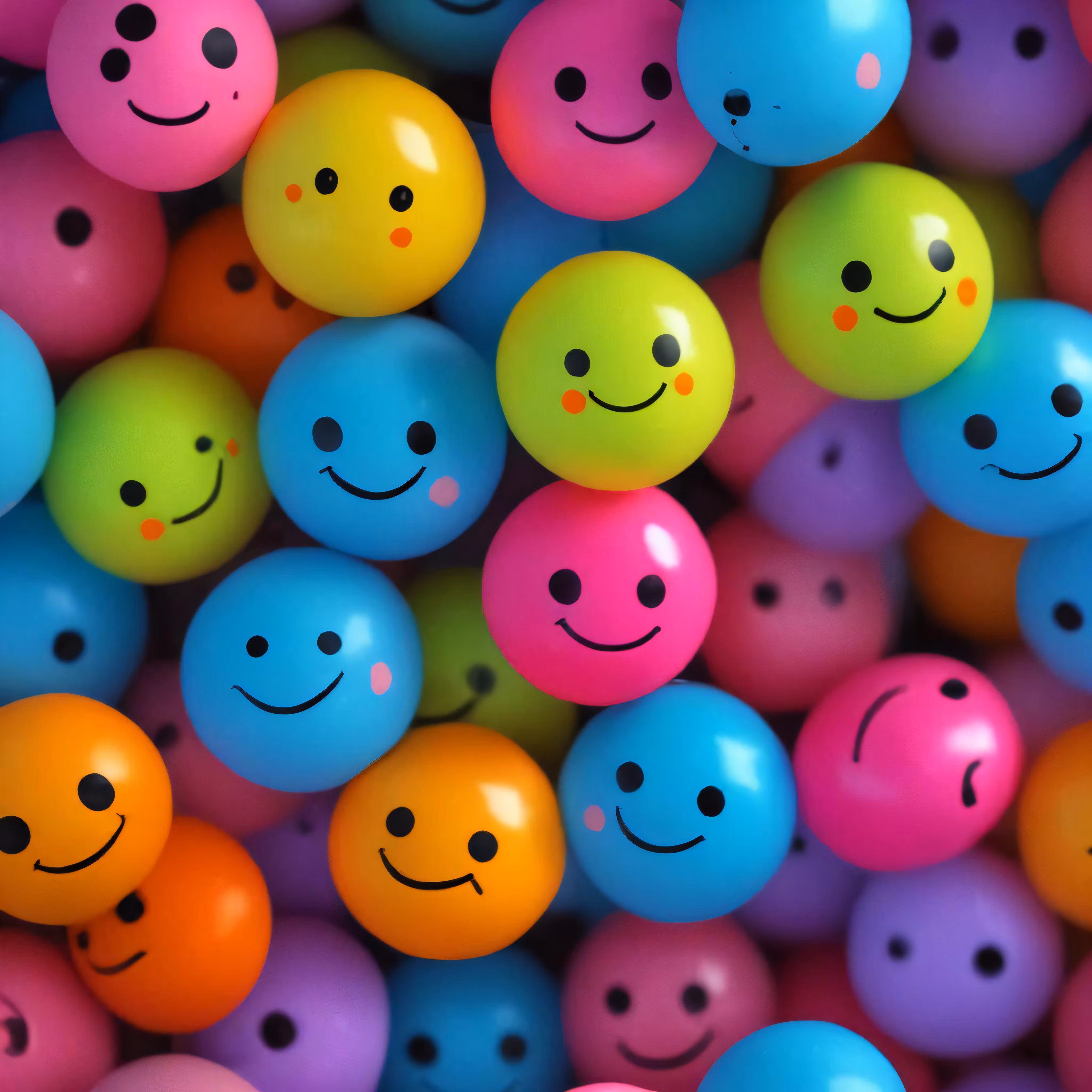 High resolution picture, free to use, a pile of colored balls with small smiley faces on them