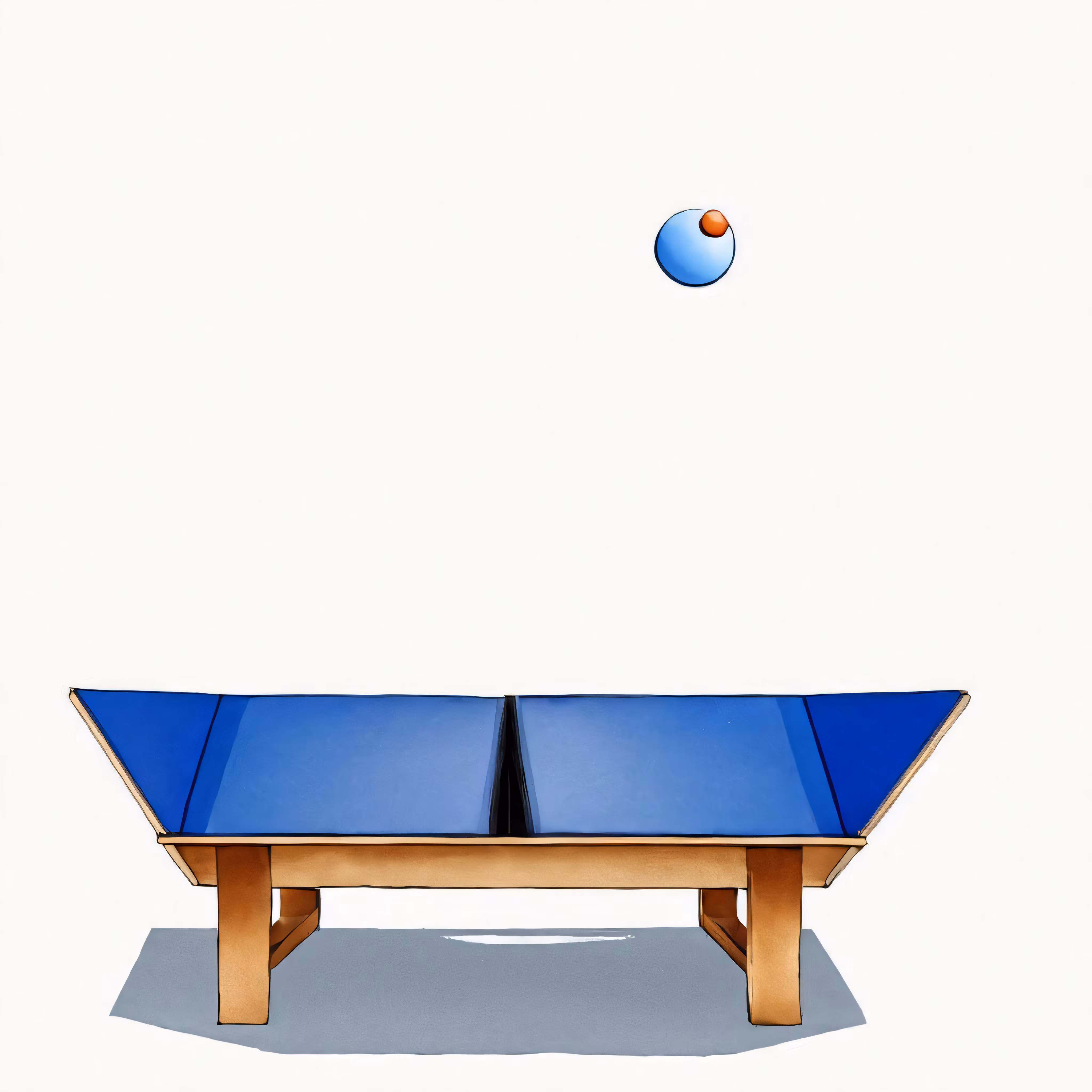 High resolution picture, free to use, a ping pong table in blue with blue ping pong ball above it