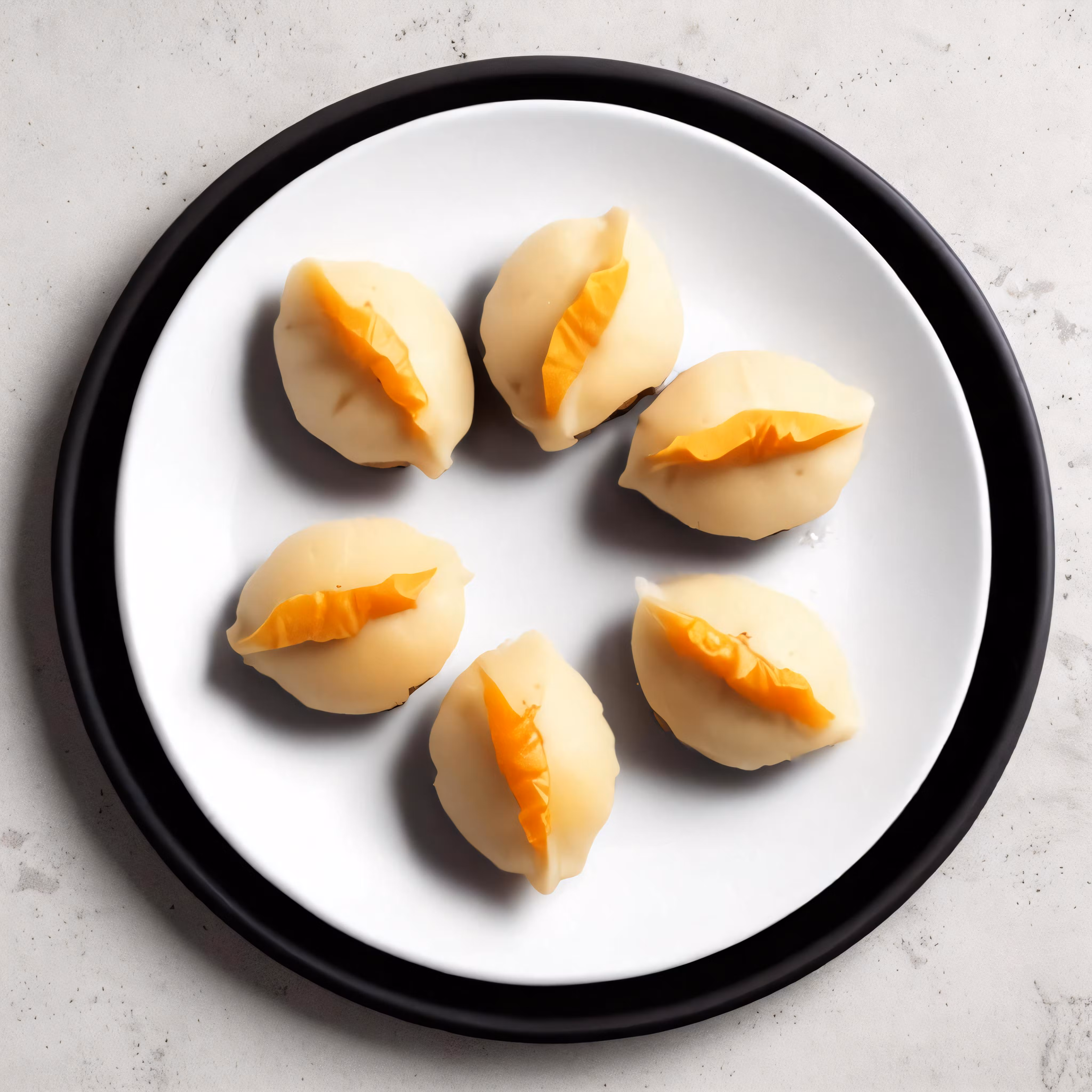 High resolution picture, free to use, a plate filled with four scallops of sliced cheese