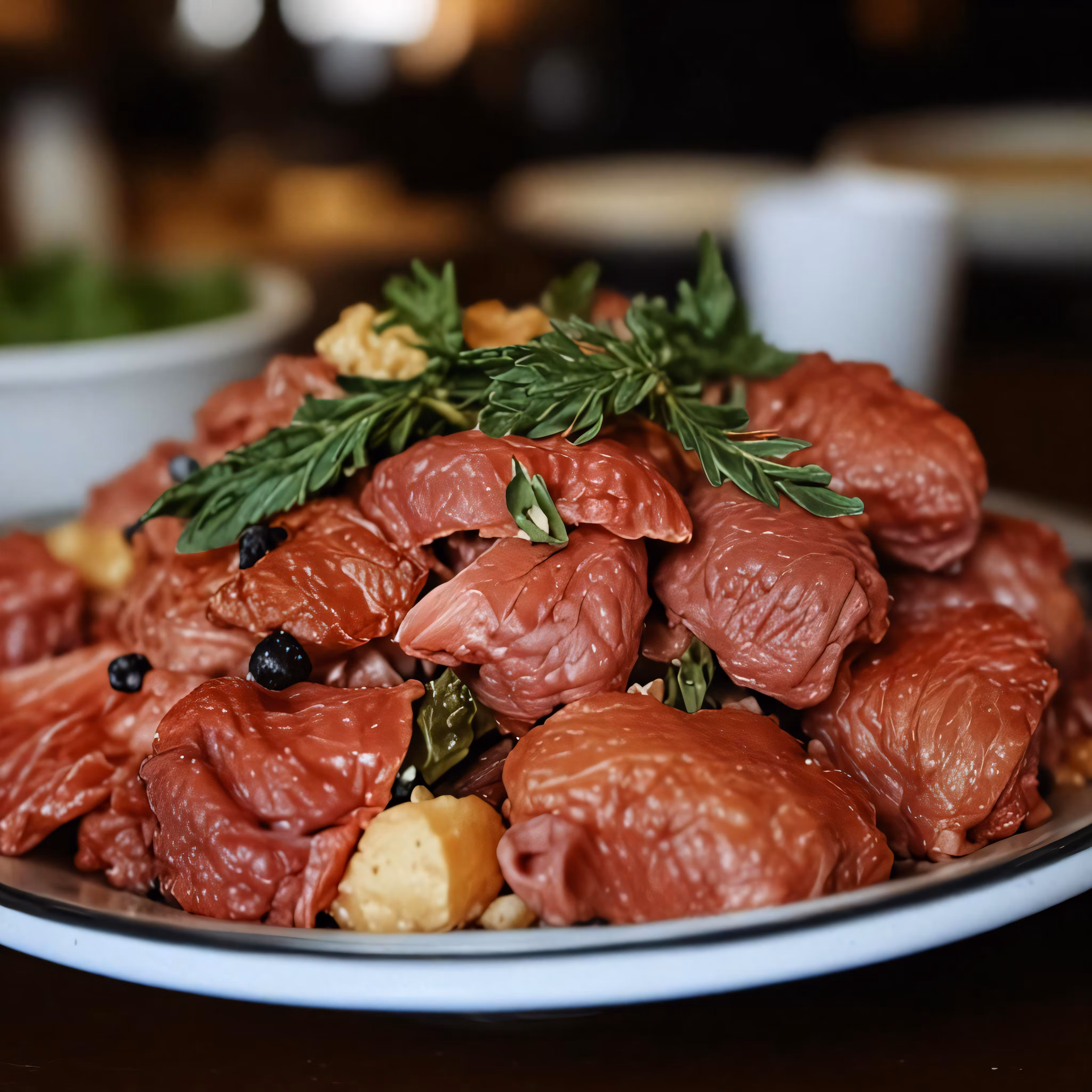 High resolution picture, free to use, a platter filled with food, including meat and potatoes