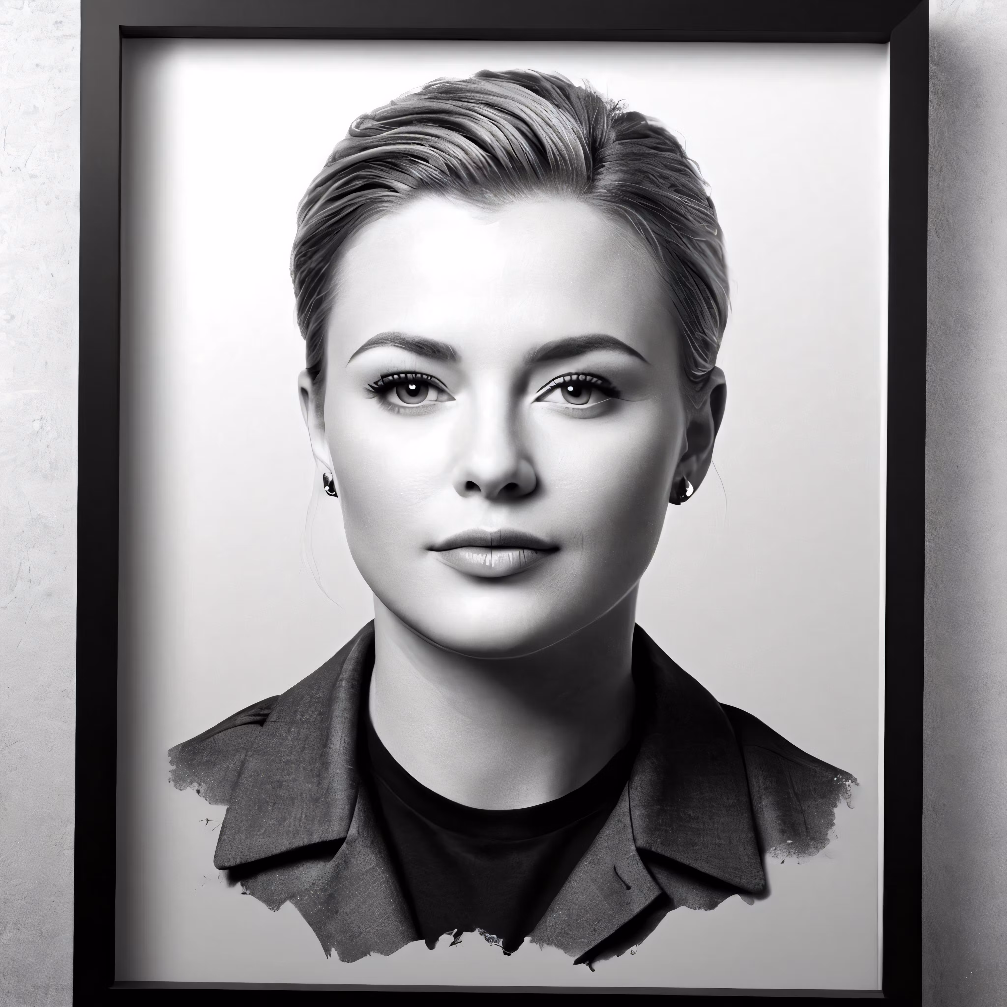 High resolution picture, free to use, a portrait of a woman with short hair in black frame