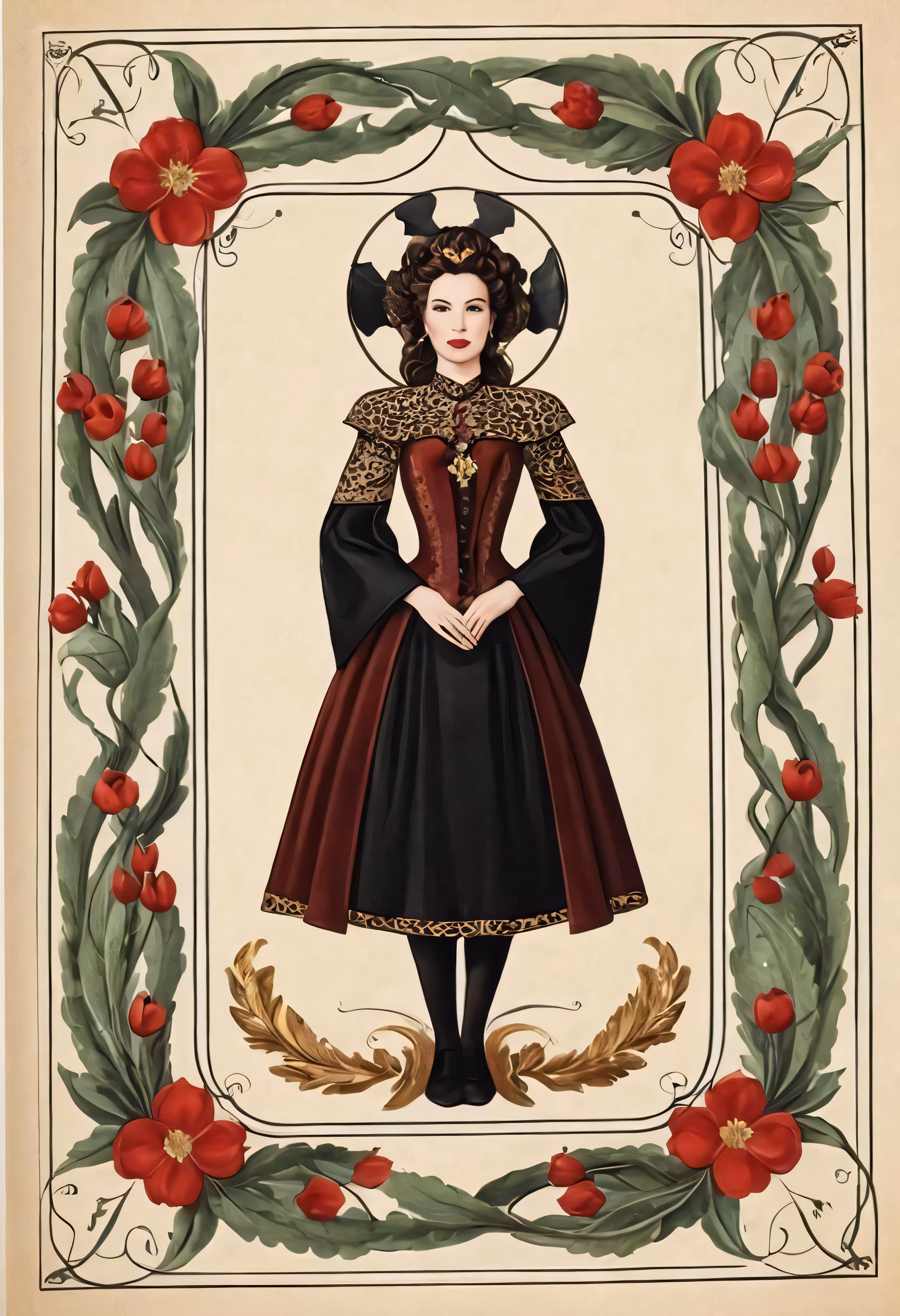 High resolution picture, free to use, a portrait of an old woman in a red and black dress