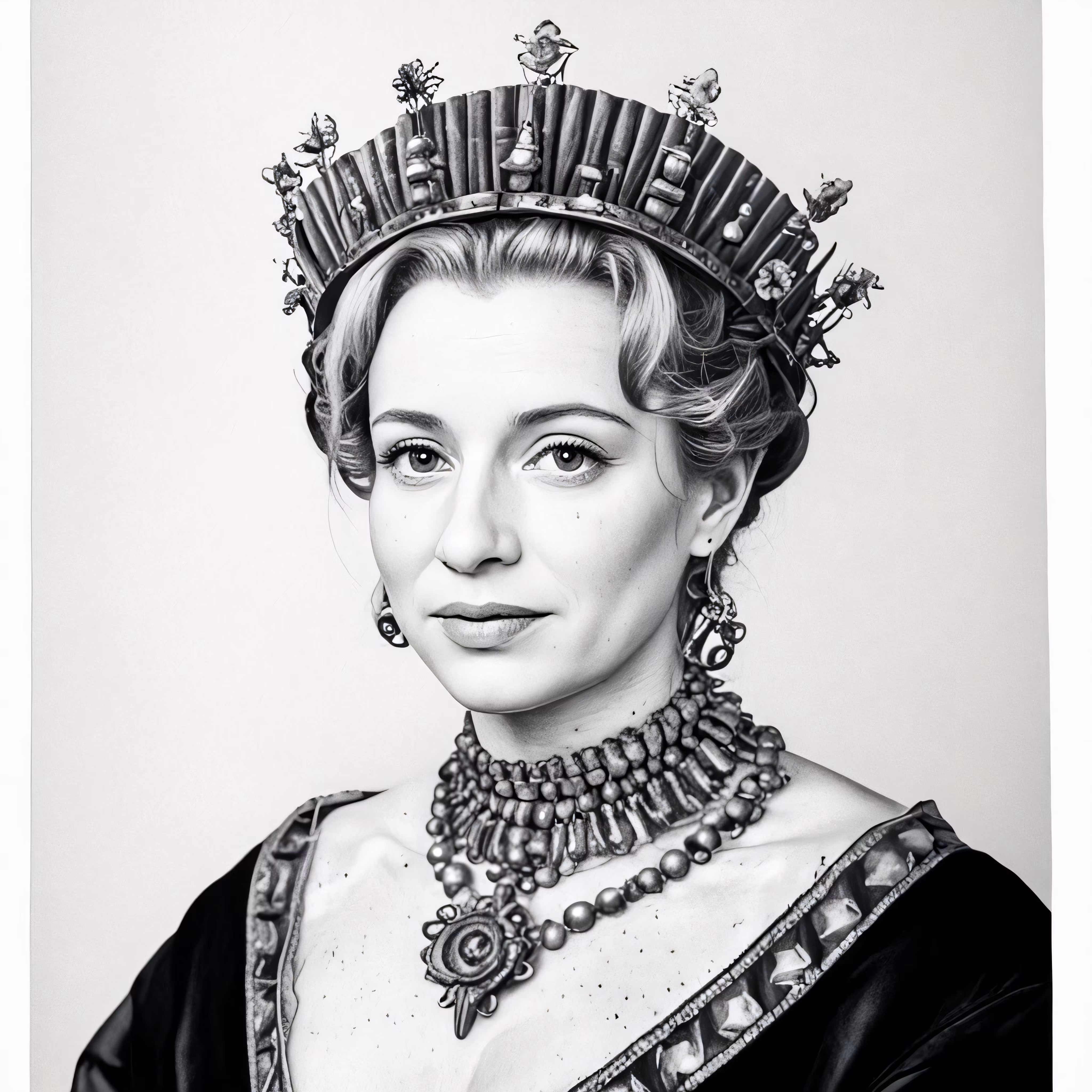 High resolution picture, free to use, a portrait of the queen of france wearing a tiara and pearls