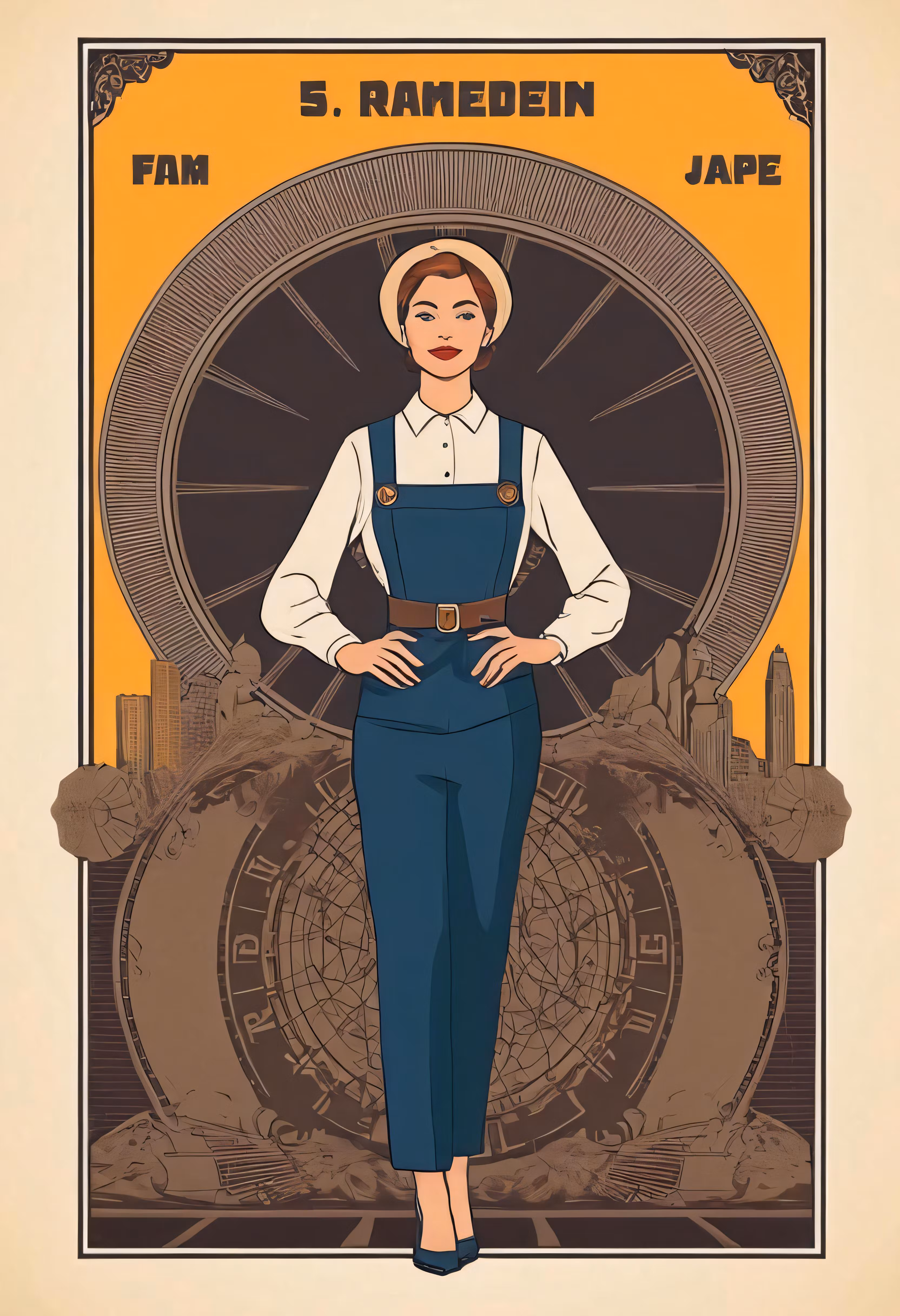 High resolution picture, free to use, a poster for the film from an image with a woman in overalls and a hat