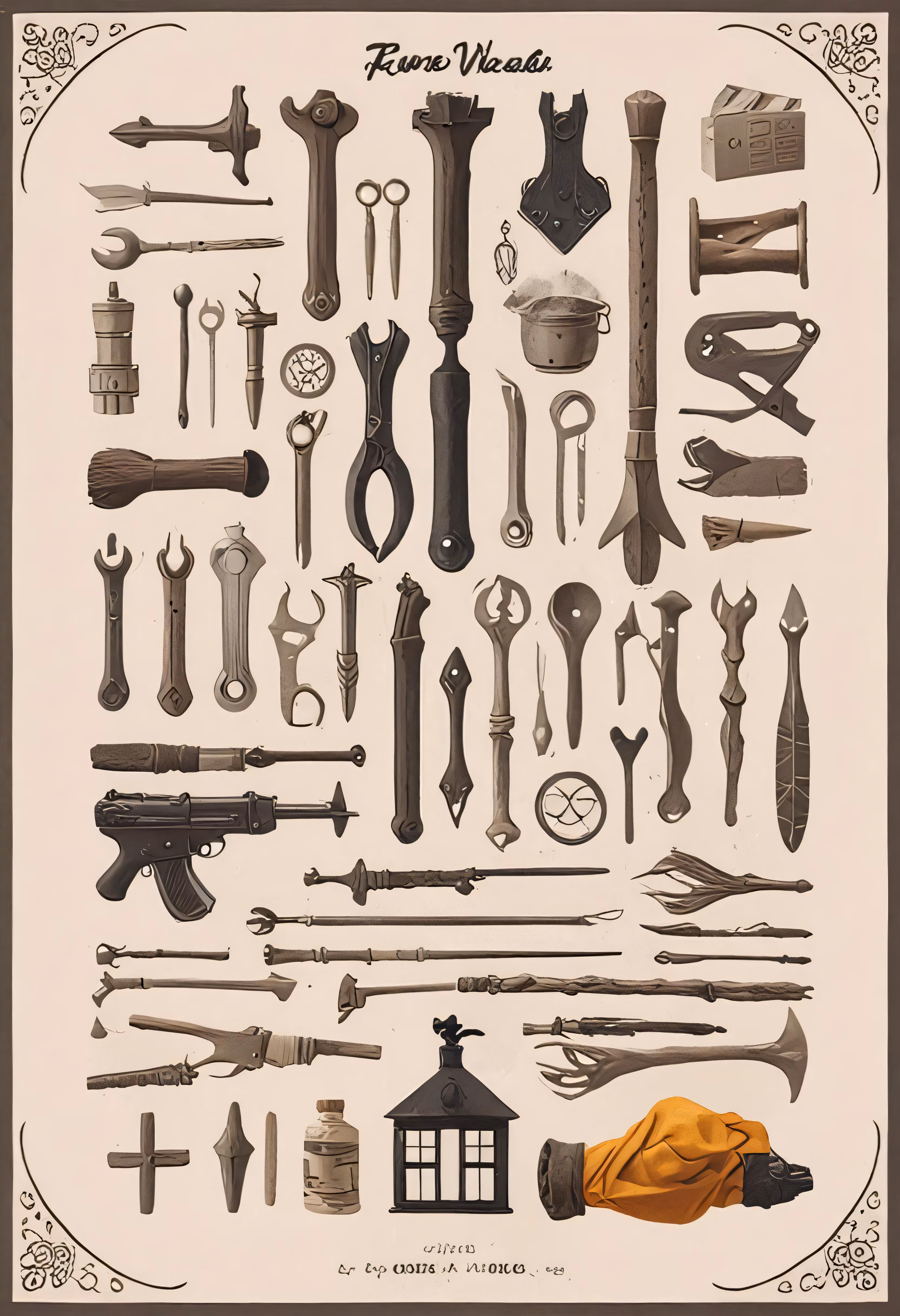 High resolution picture, free to use, a poster of an assortment of tools in black and white