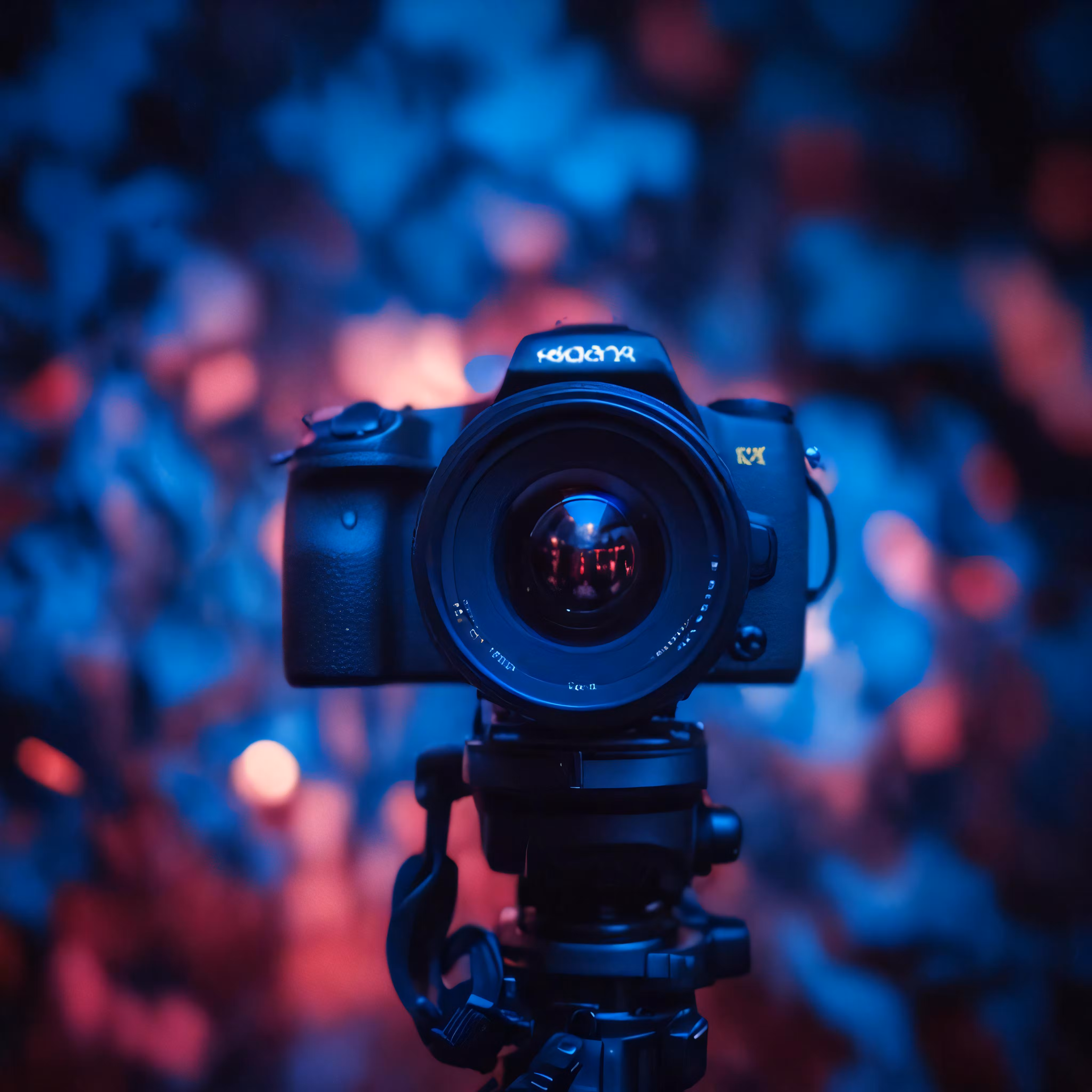 High resolution picture, free to use, a red and blue camera on top of a tripod