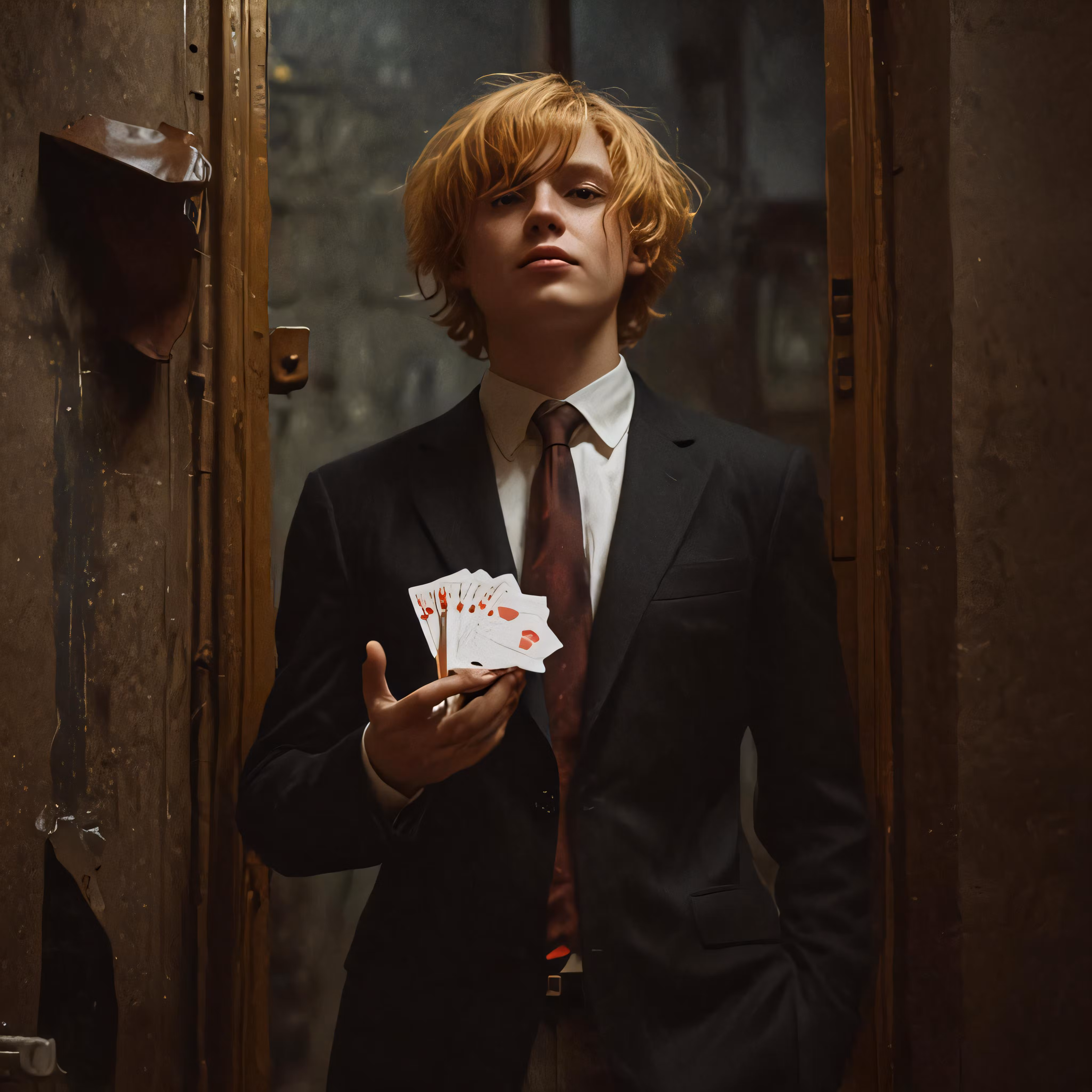 High resolution picture, free to use, a red haired boy is holding an item out of his hands