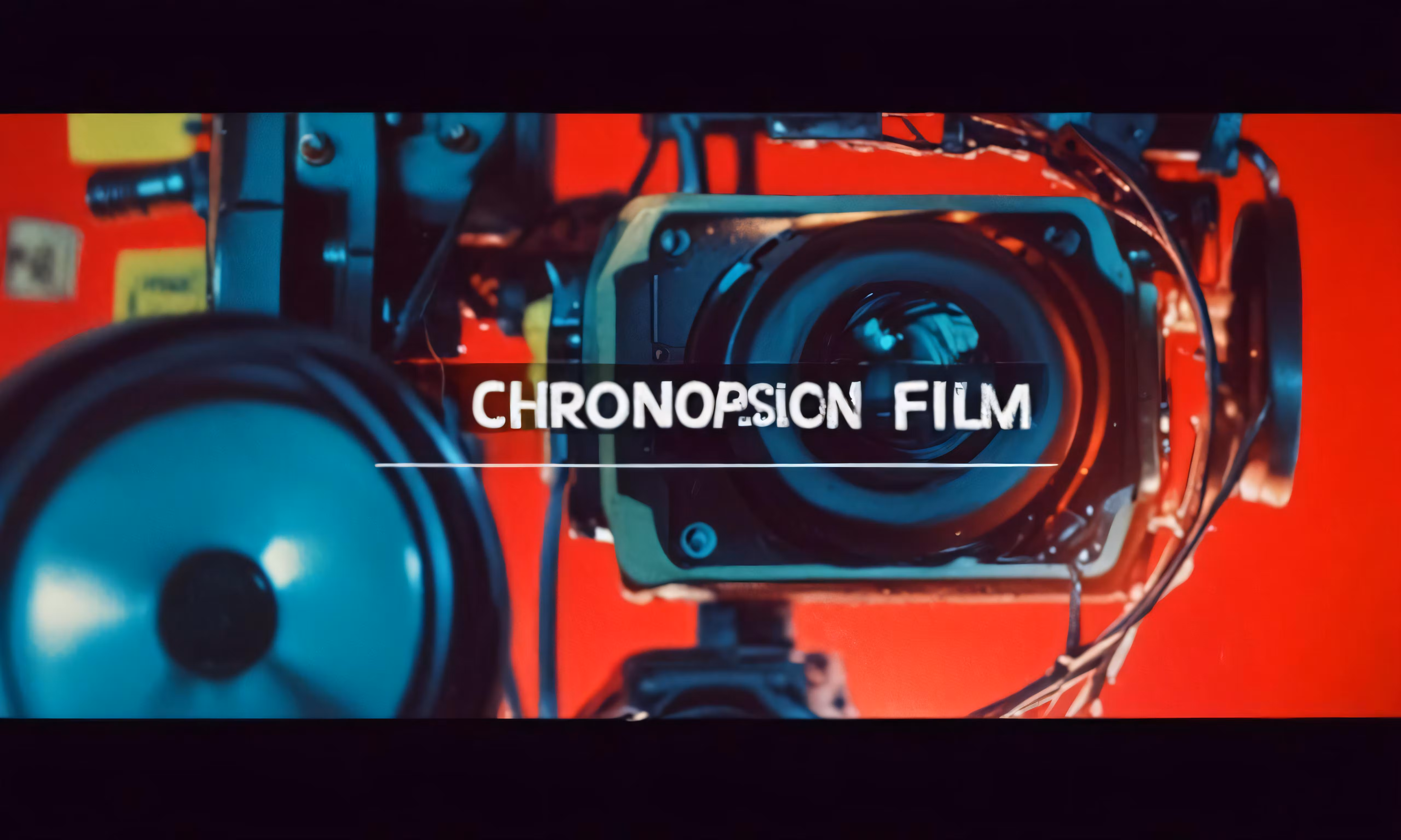 High resolution picture, free to use, a red photo with the words chronopixn film next to a red camera
