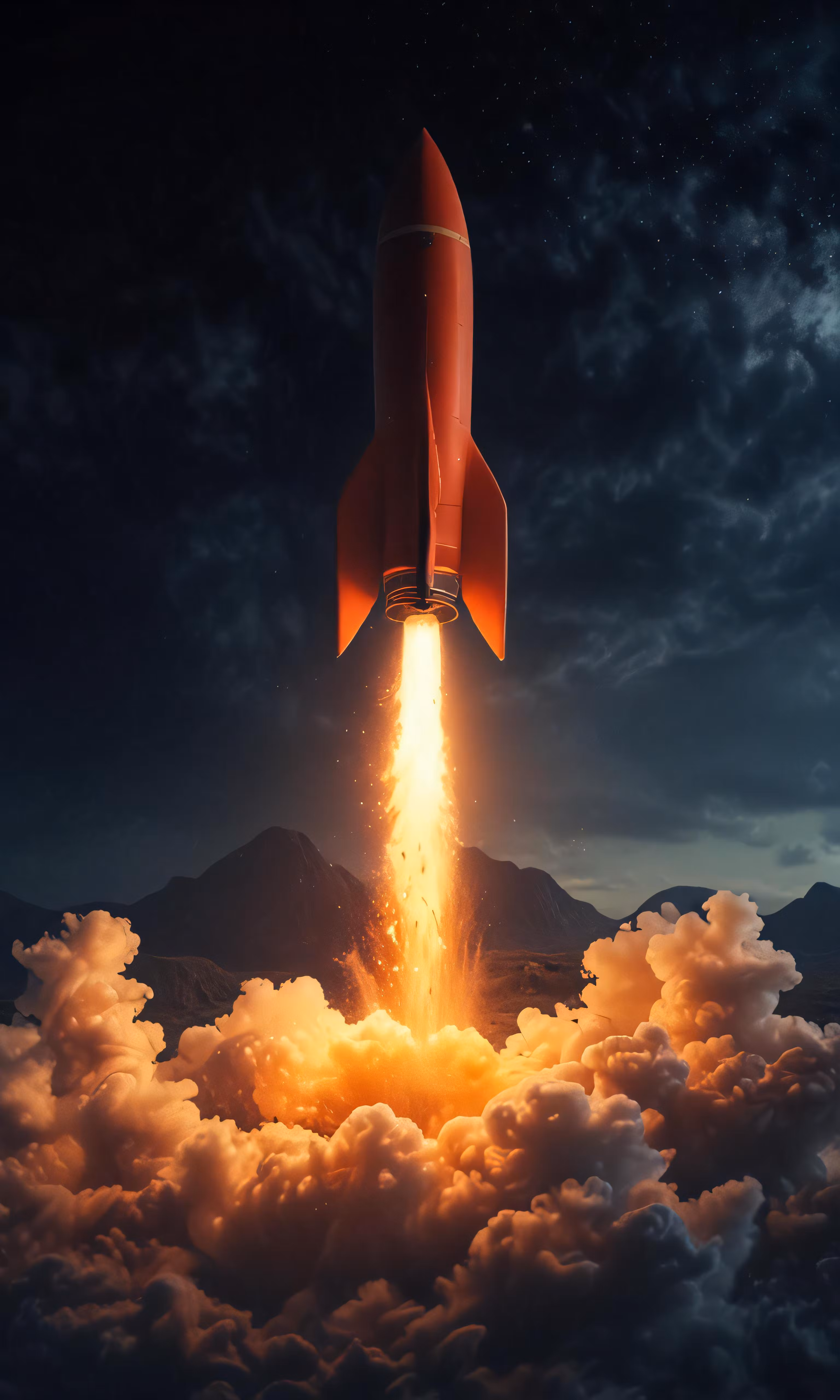 High resolution picture, free to use, a red rocket is being launched into the sky