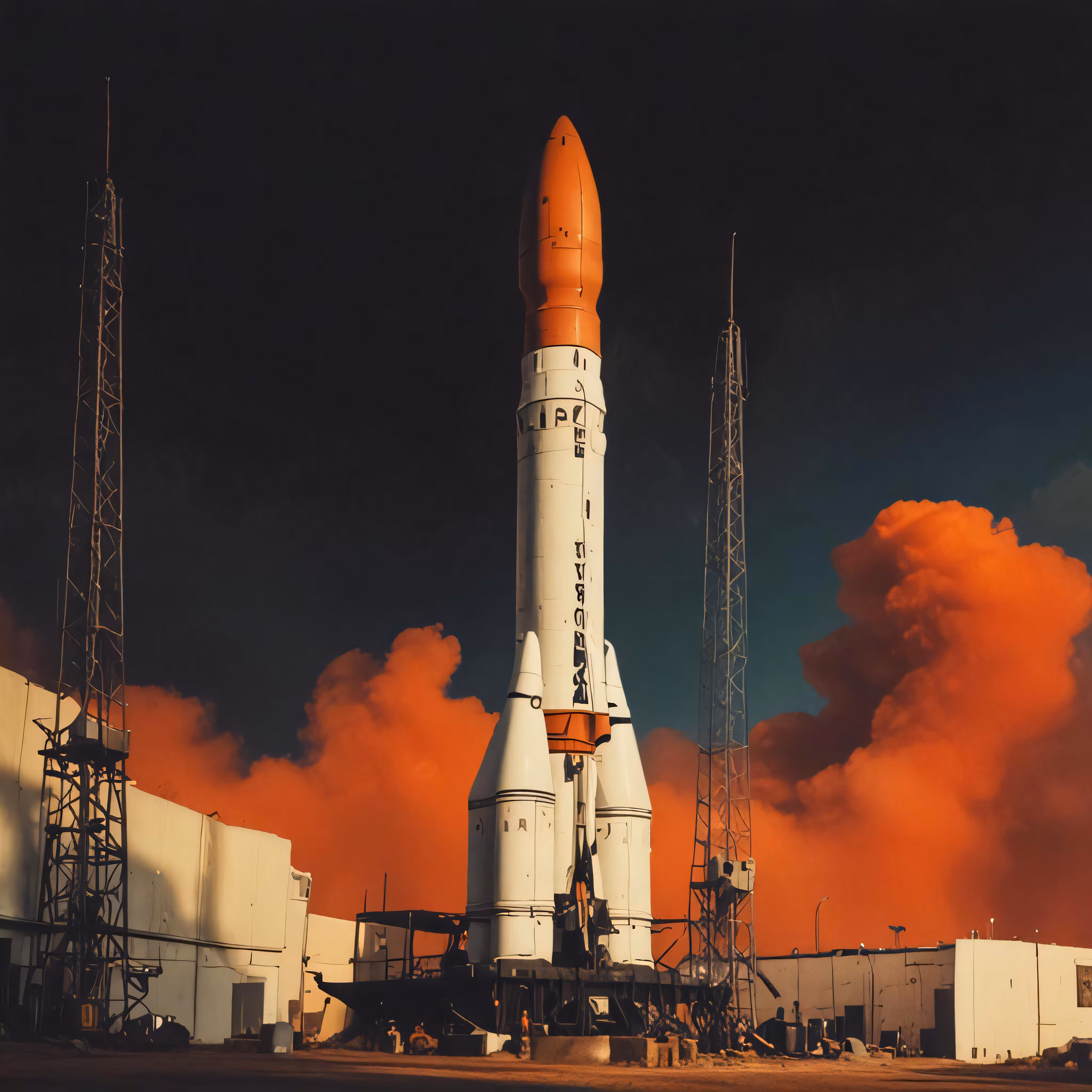High resolution picture, free to use, a rocket sitting on top of a pile of dirt