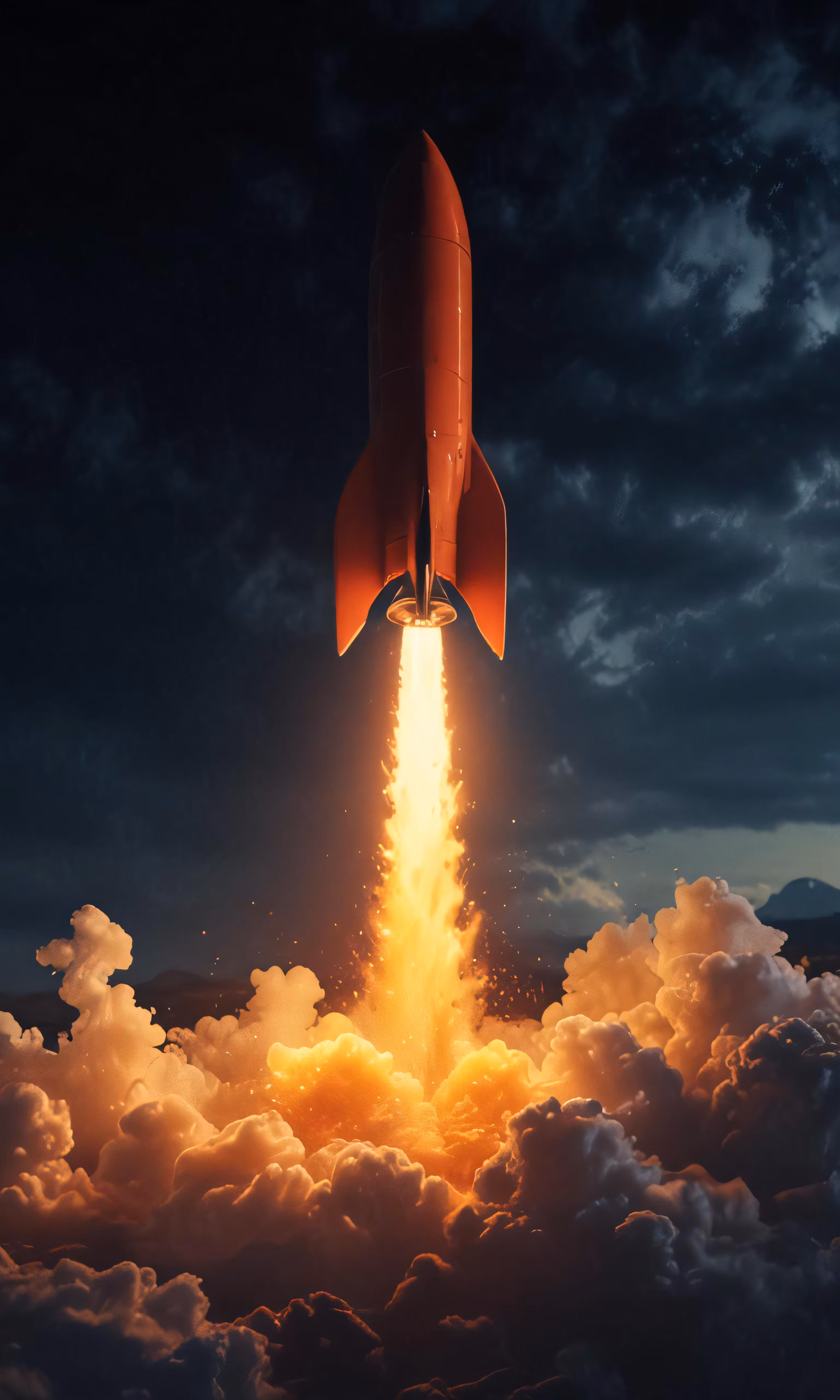 High resolution picture, free to use, a rocket that is flying into the air above clouds