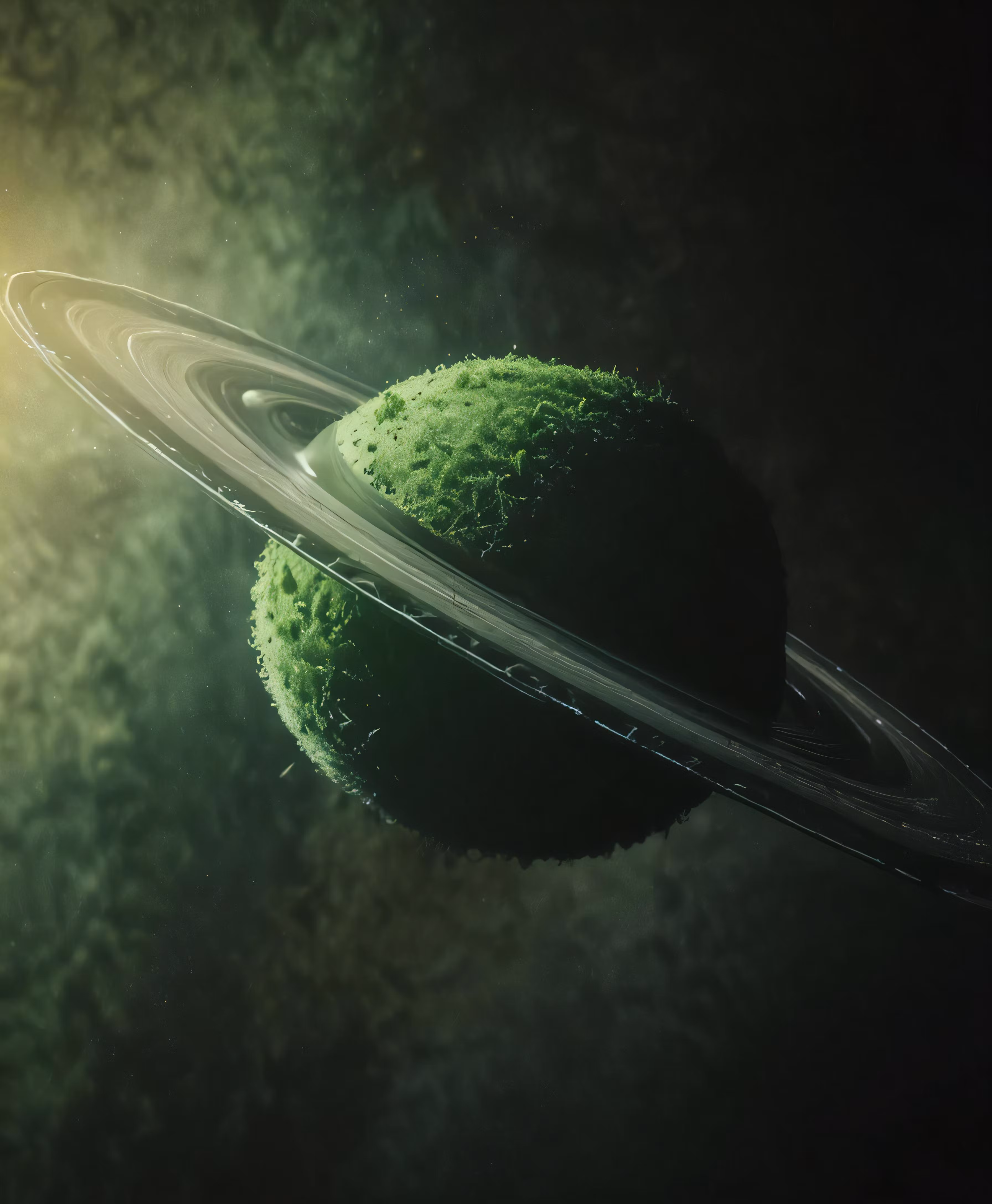 High resolution picture, free to use, a saturn or planet with its rings spinning in the air