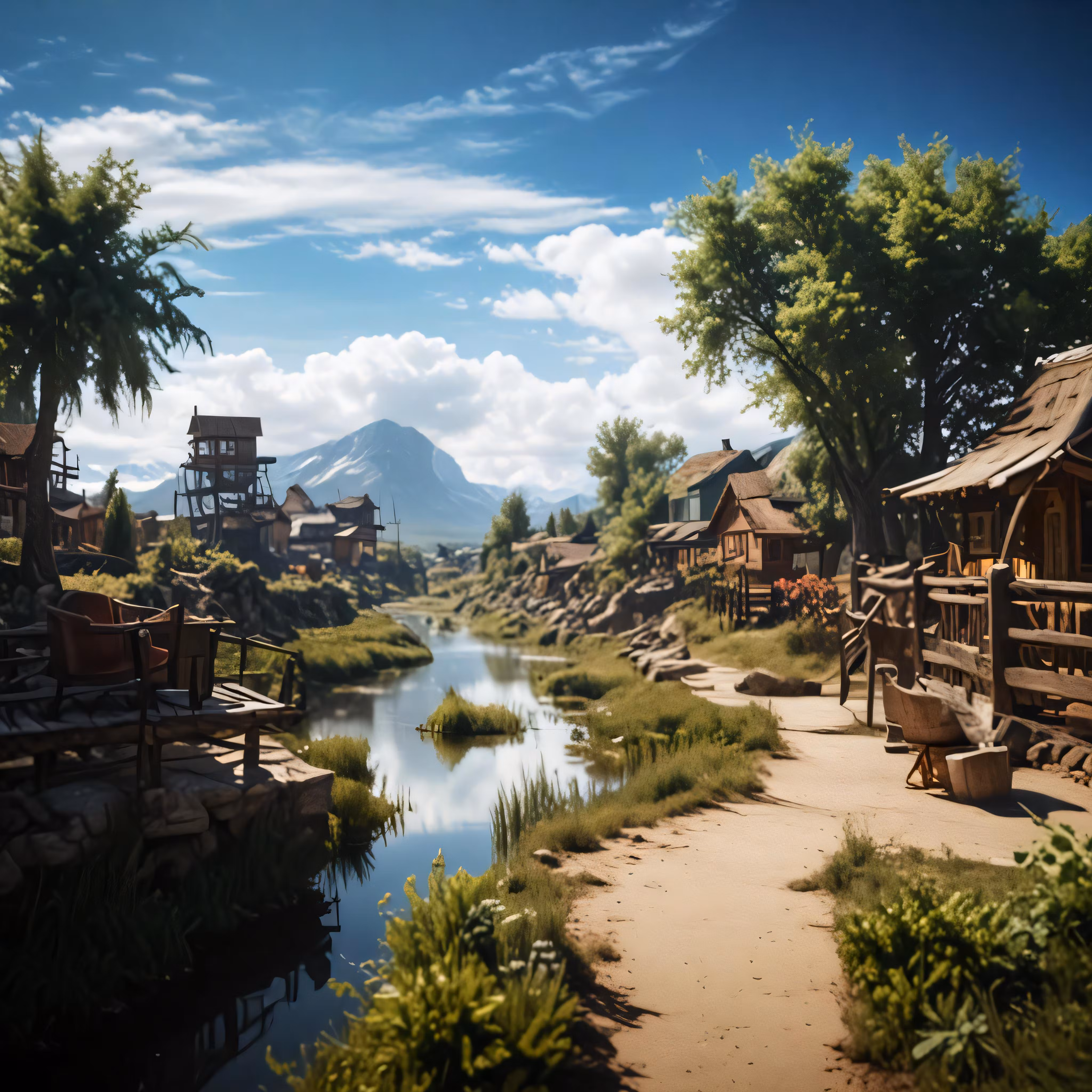 High resolution picture, free to use, a scenic photo with a wooden cabin and river