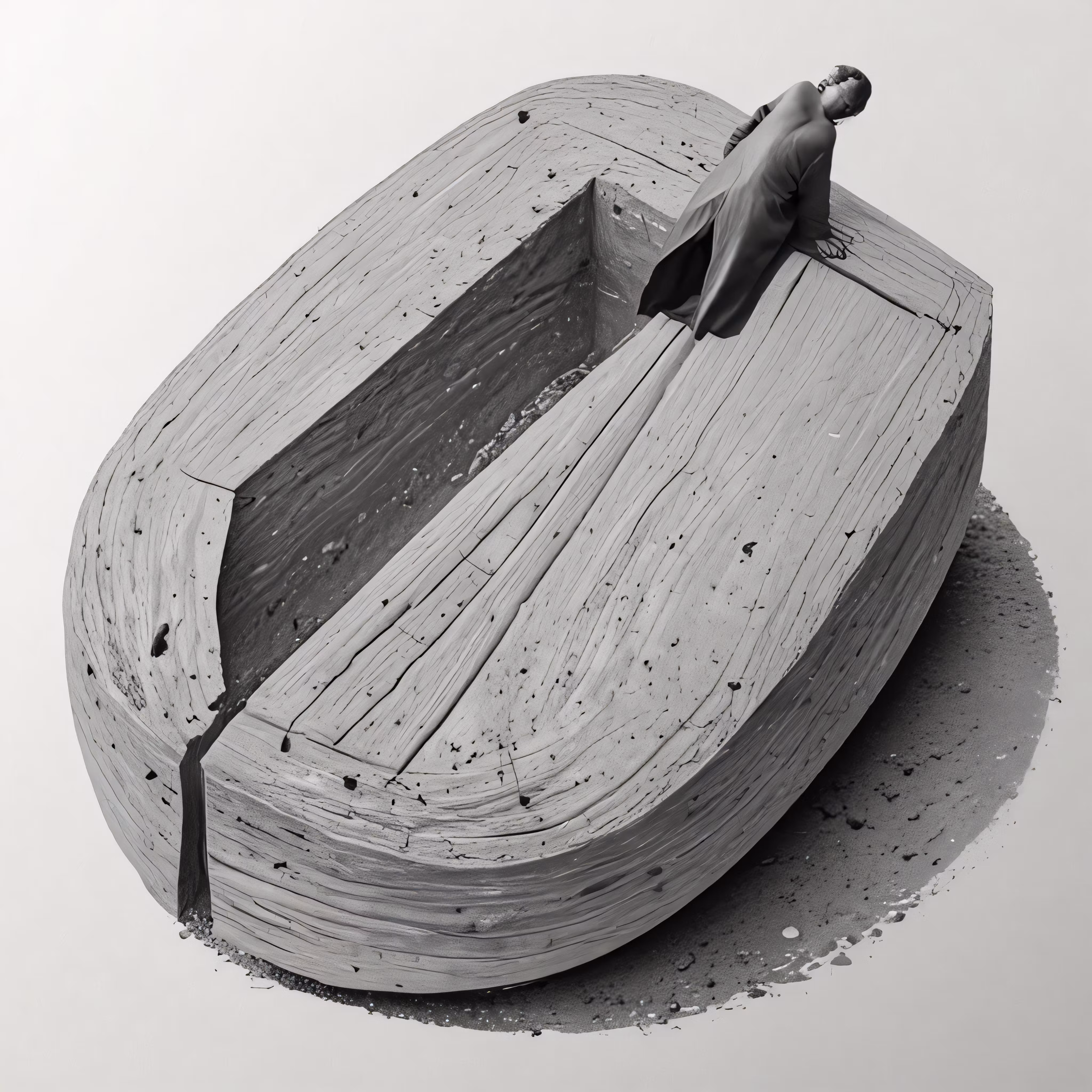 High resolution picture, free to use, a sculpture in the shape of a wooden boat