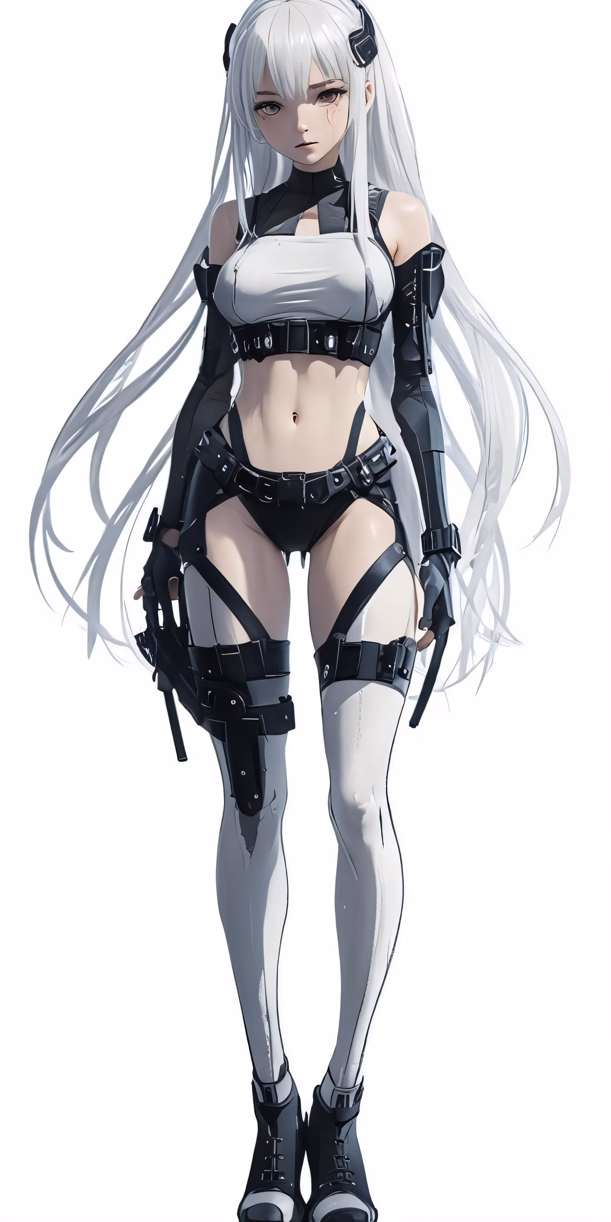High resolution picture, free to use, a sexy anime woman in a black and white outfit