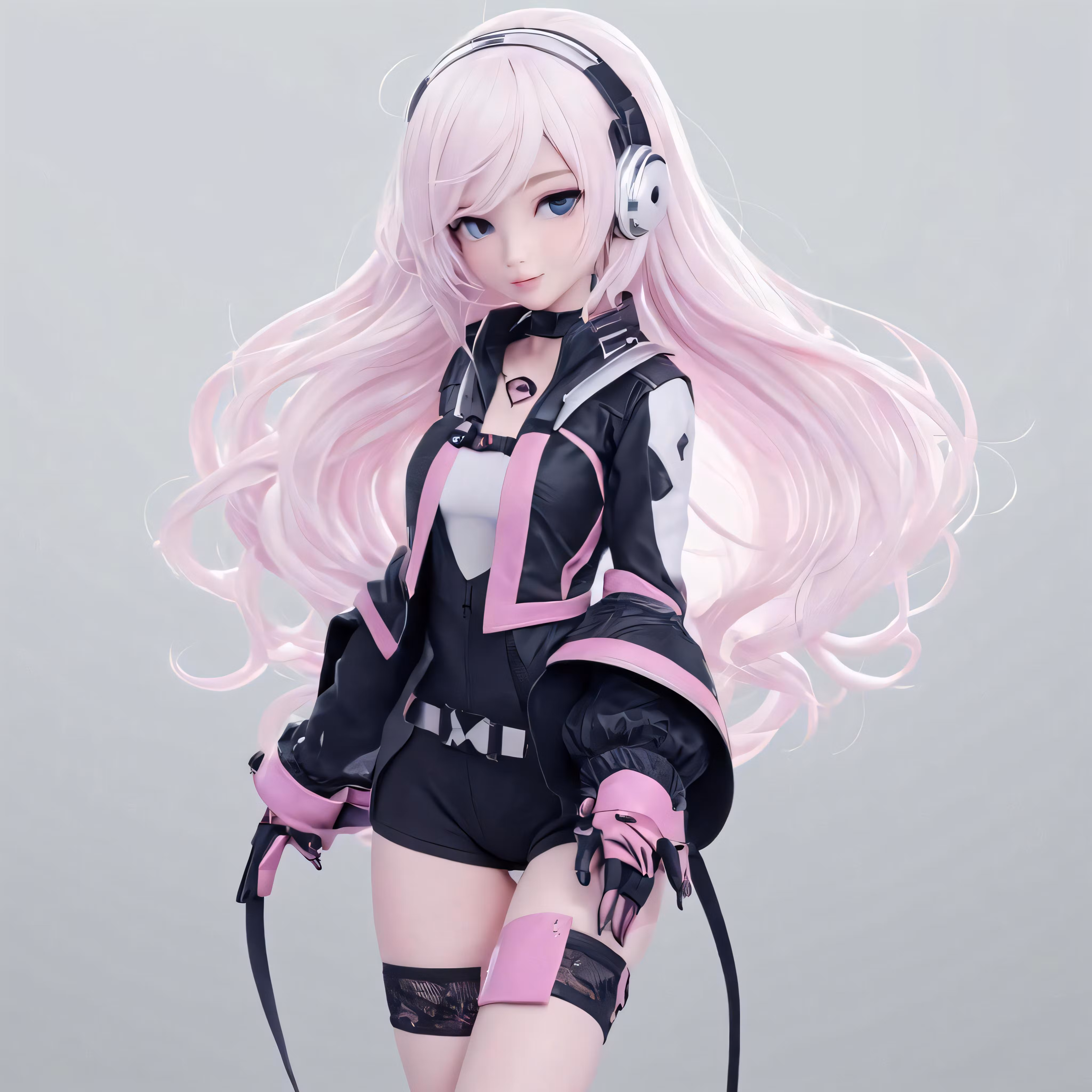 High resolution picture, free to use, a sexy pink haired woman with headphones standing