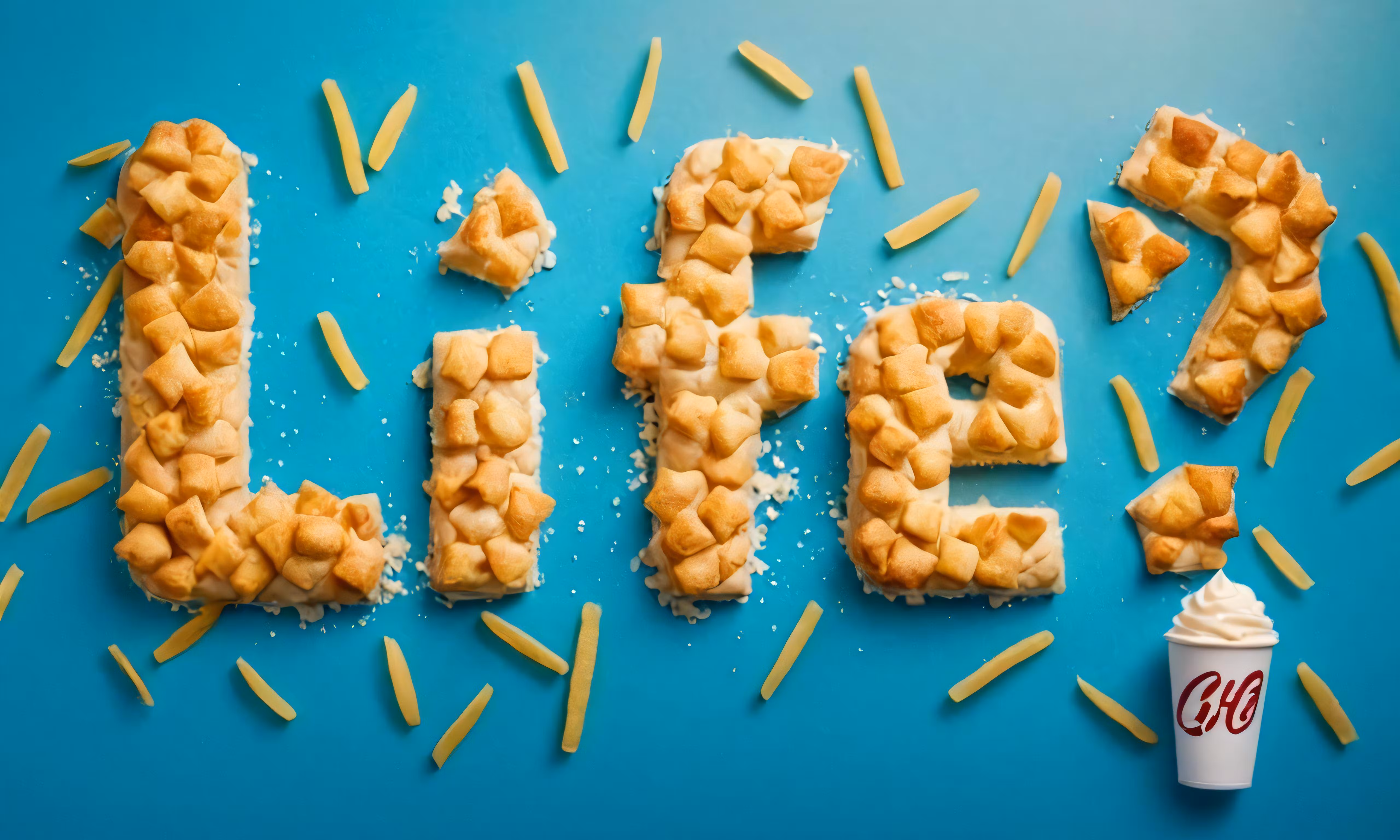 High resolution picture, free to use, a sign made out of food, some sort of letter