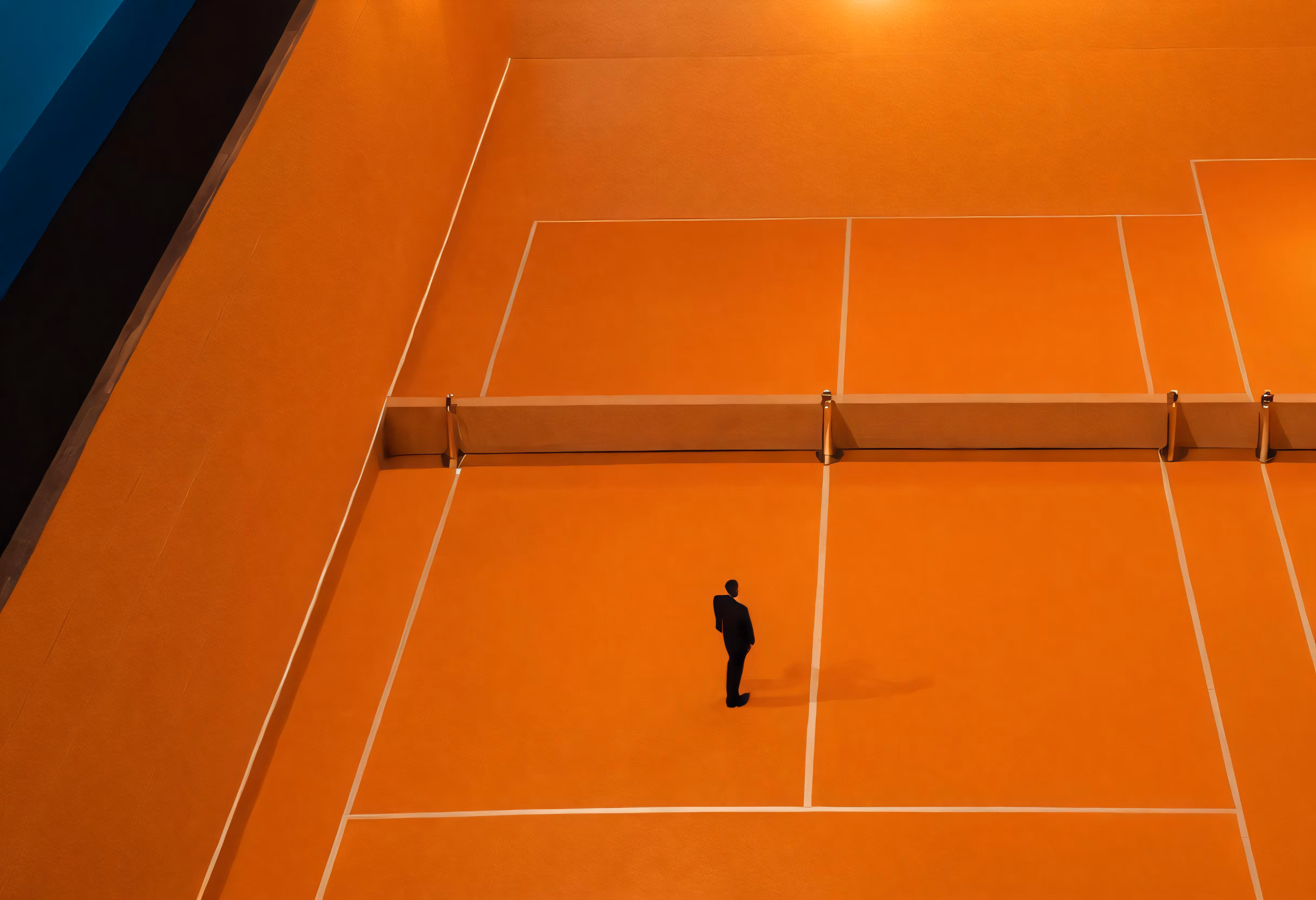 High resolution picture, free to use, a silhouette of a person stands on a tennis court
