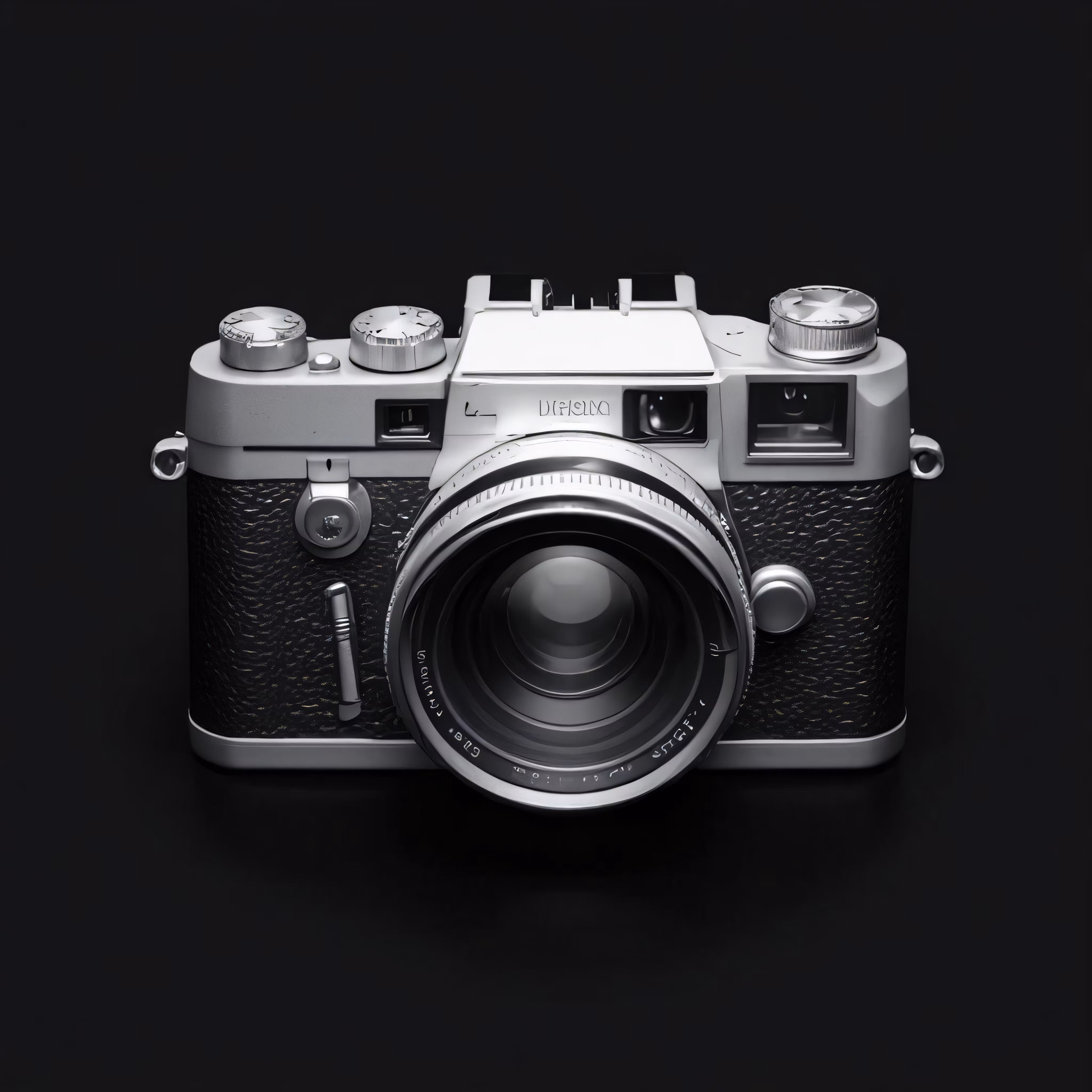 High resolution picture, free to use, a silver camera with an empty lens and no background