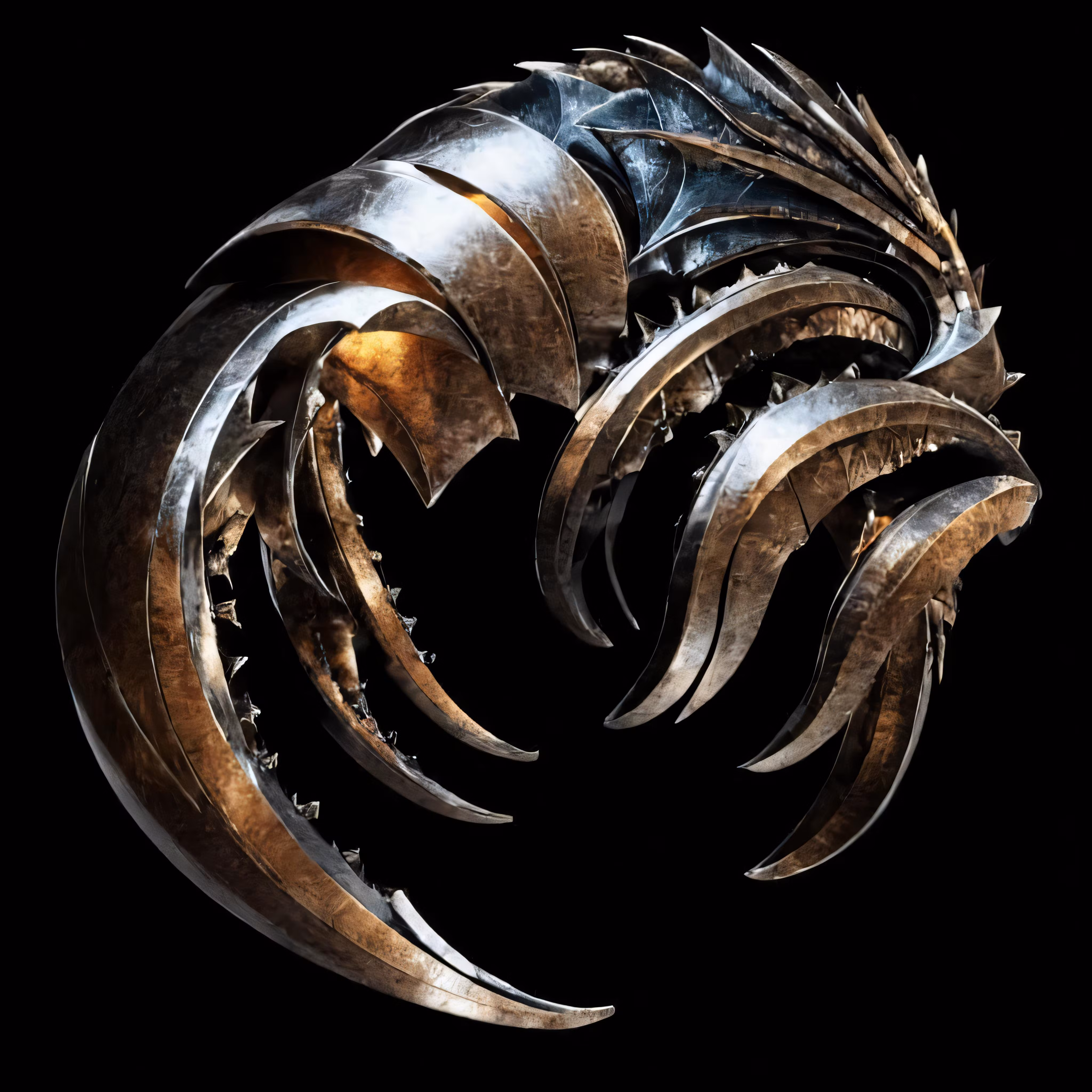 High resolution picture, free to use, a silver sculpture with gold accents on a black background