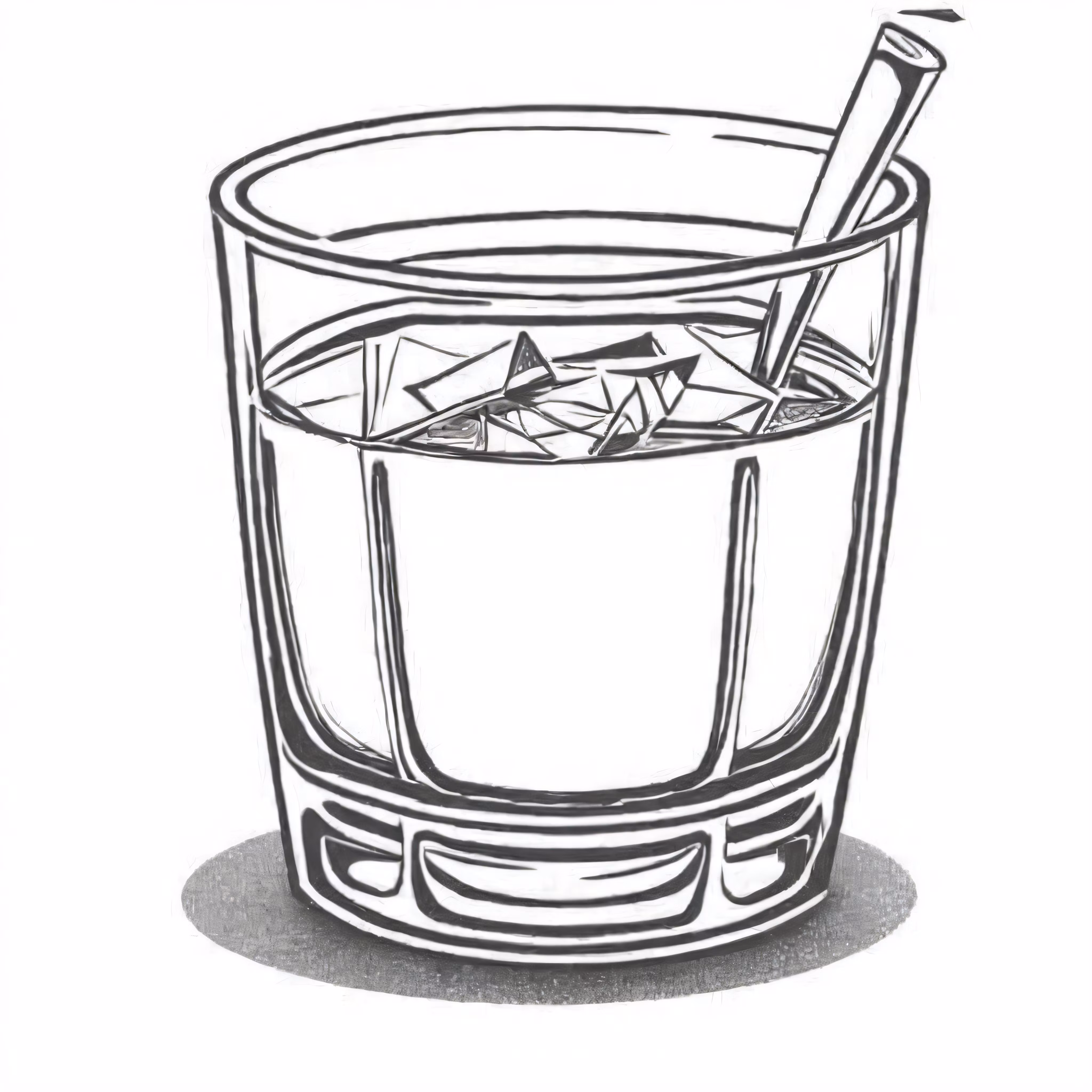 High resolution picture, free to use, a sketch of an alcoholic beverage with ice in a glass